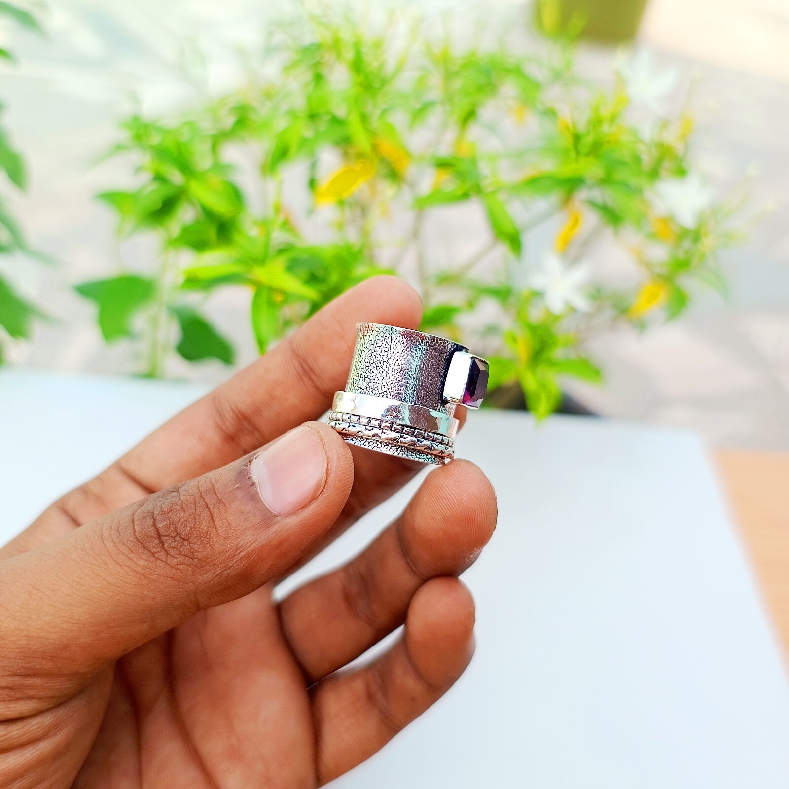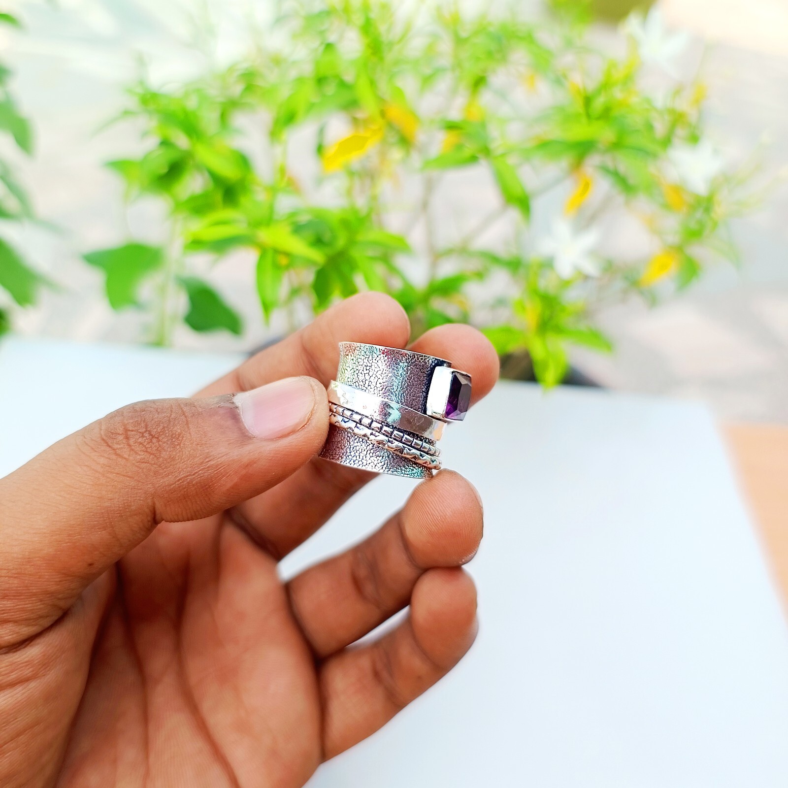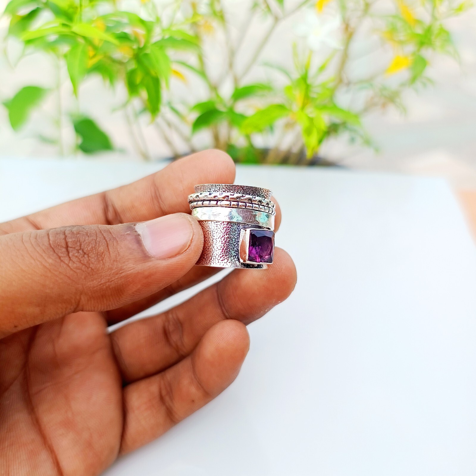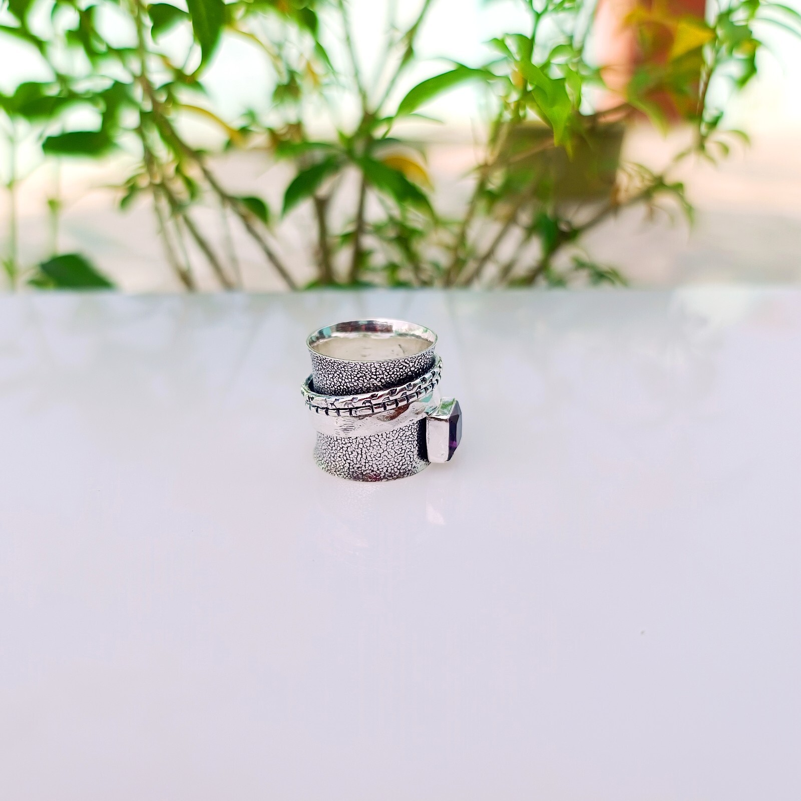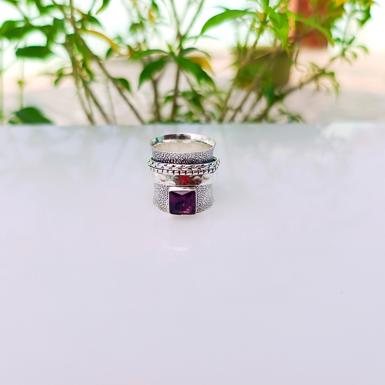 как выглядит Purple Amethyst Spinner Ring Solid 925 Sterling Silver Handmade Ring Jewelry фото