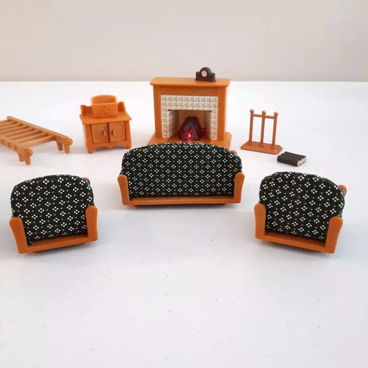 • Sylvanian Families Furniture Lot Living Room Kitchen Sofa Chairs Table Fireplace