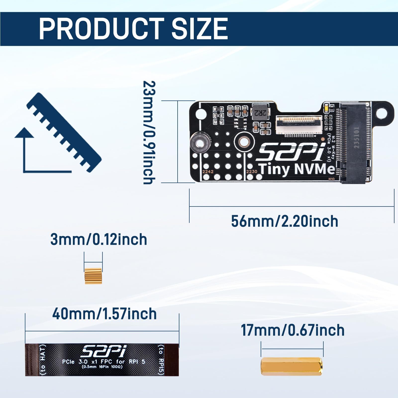 N10 Tiny PCIe M.2 Key-M NVMe SSD PCIe Peripheral Board for Raspberry Pi 5, Su...