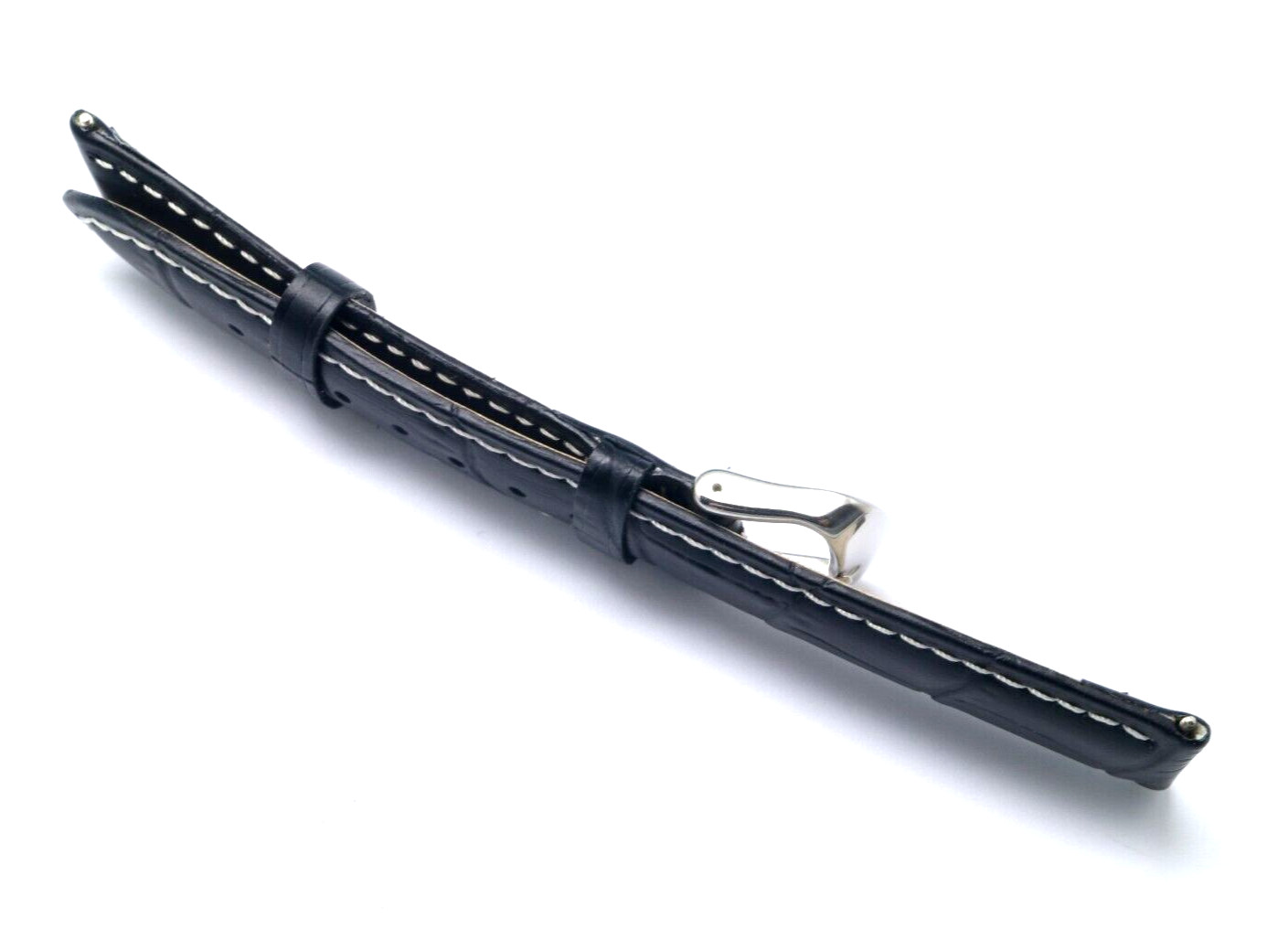 как выглядит 3Pcs 18mm Black/White Crocodile Grain Leather Unisex Watch Strap Silver Buckle фото