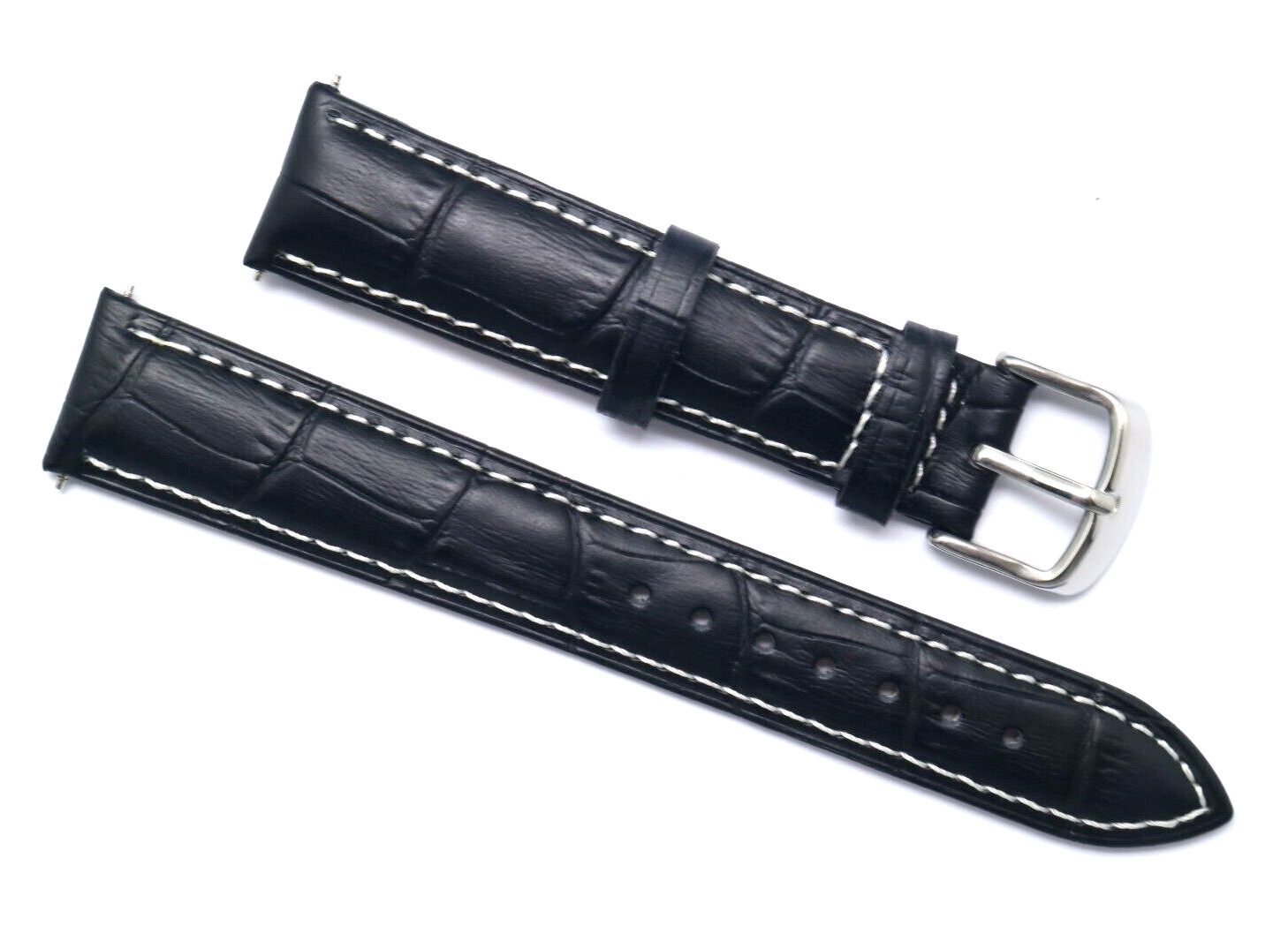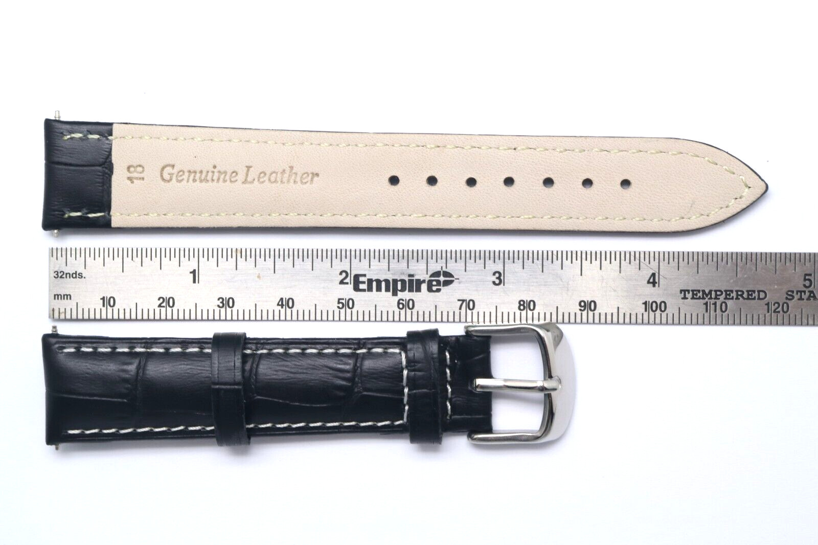 3Pcs 18mm Black/White Crocodile Grain Leather Unisex Watch Strap Silver Buckle