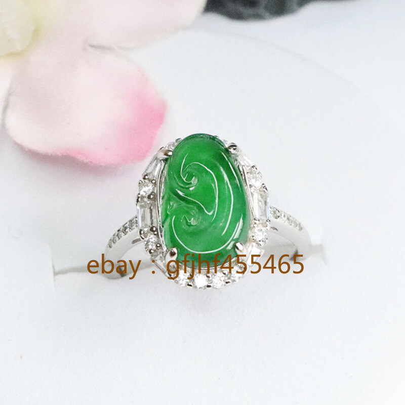 как выглядит S925 Silver set with natural jadeite ice green Ruyi ring with certificate AAA фото