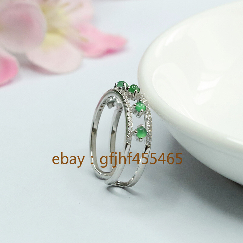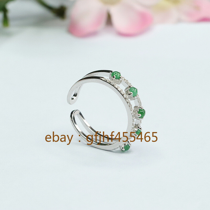 Certificate S925 Silver set Natural jadeite Ring row set egg face open ring