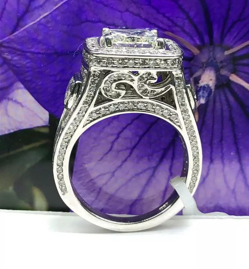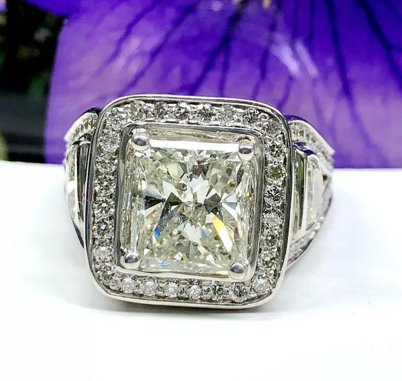 Art-Deco Engagement Ring With Radiant Cut Center 12.33CT CZ In Halo Round 3CT CZ