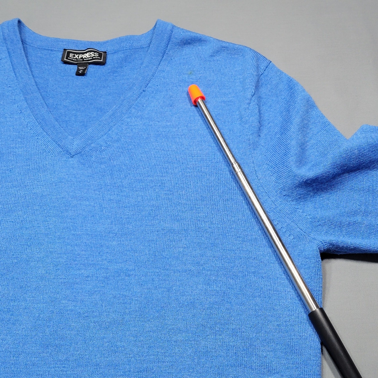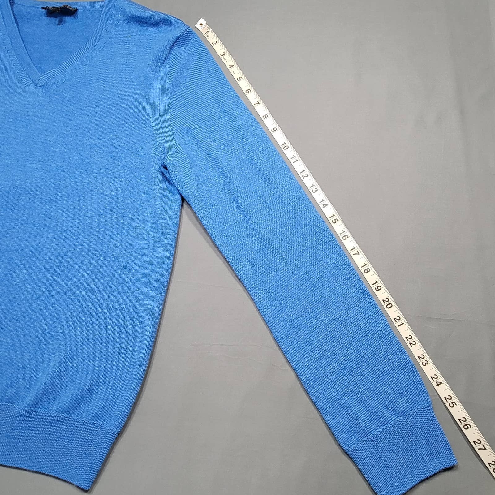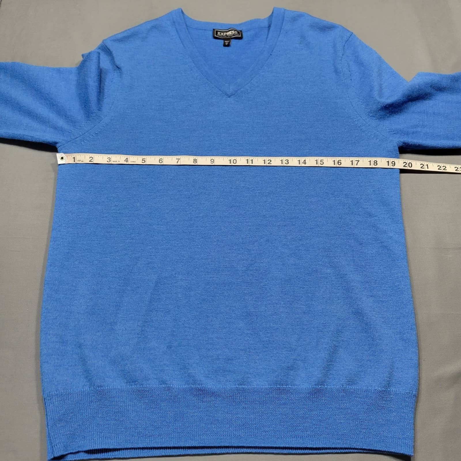 как выглядит Express Blue Sweater 100 Wool Knit Preppy Solid V-Neck Long Sleeves Mens Size M фото