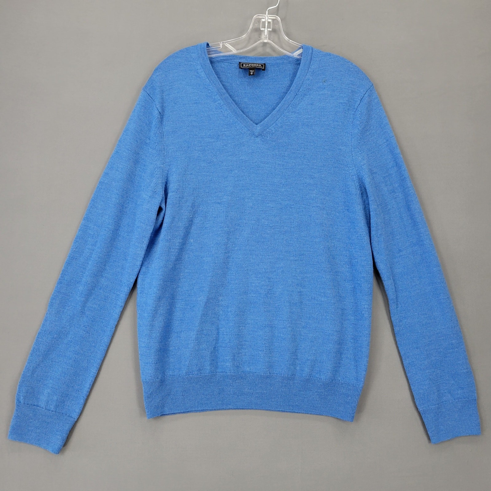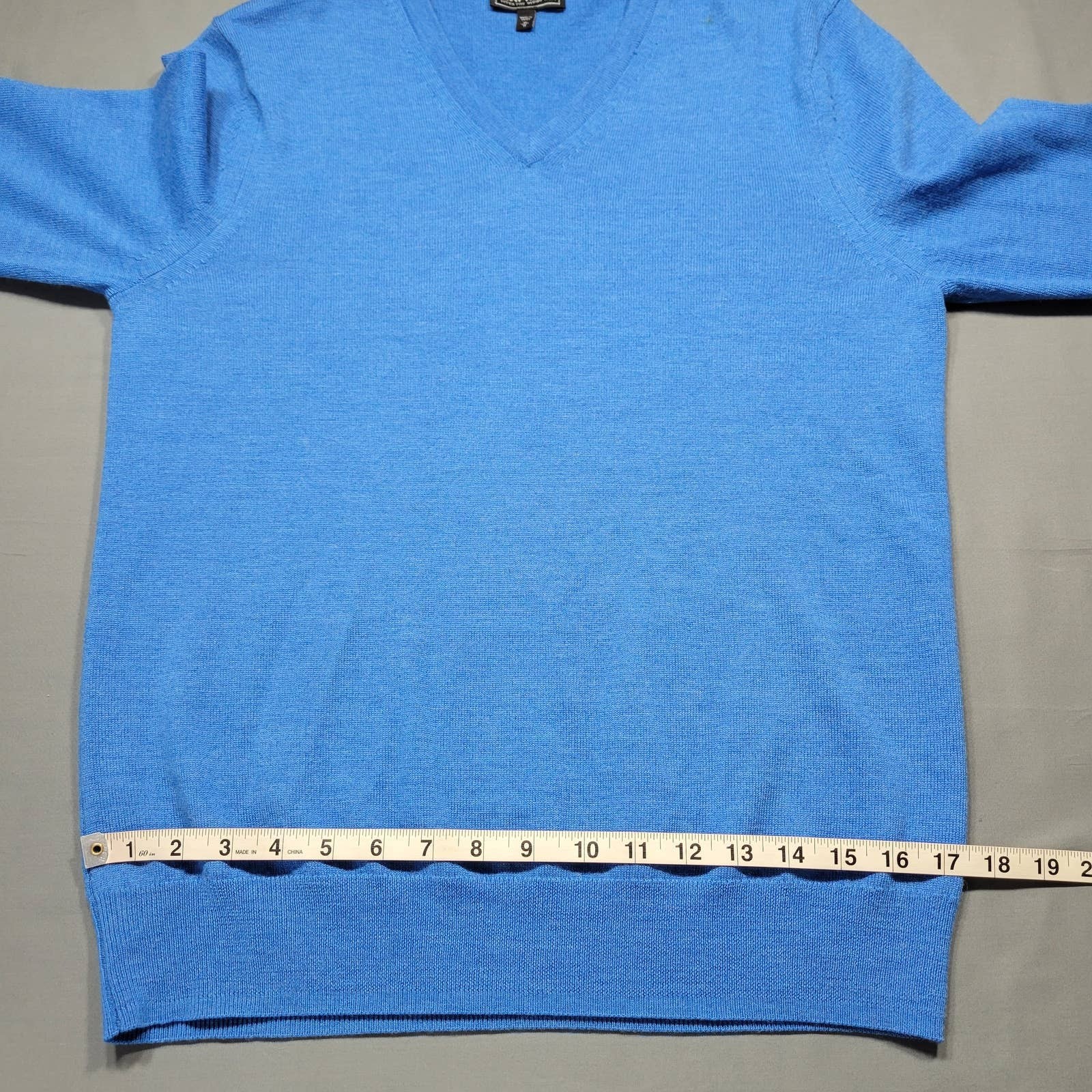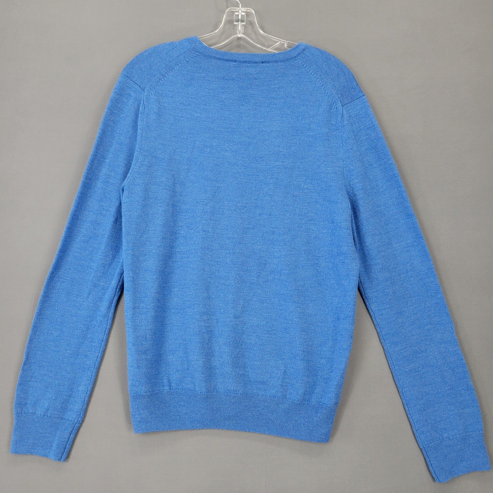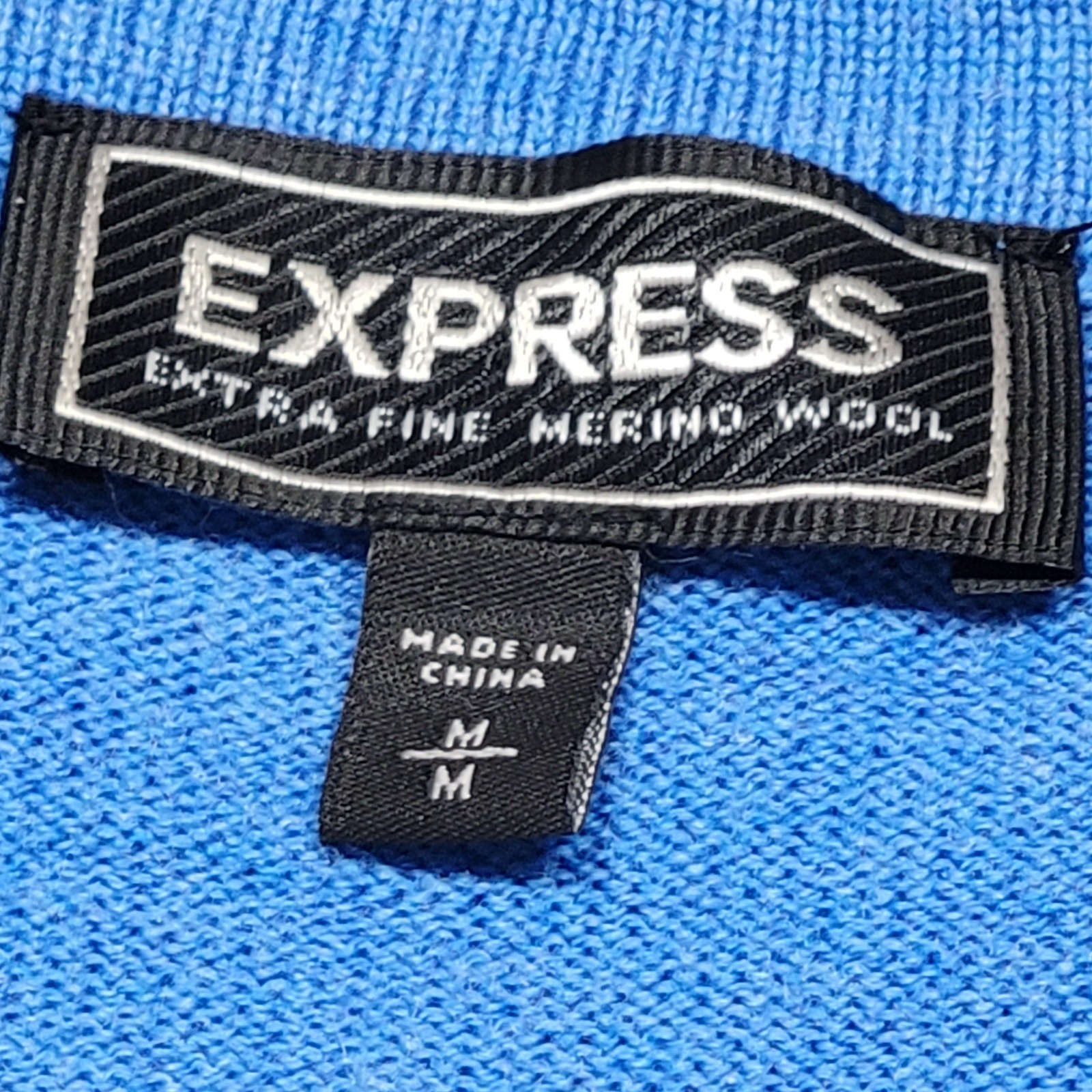 Express Blue Sweater 100 Wool Knit Preppy Solid V-Neck Long Sleeves Mens Size M