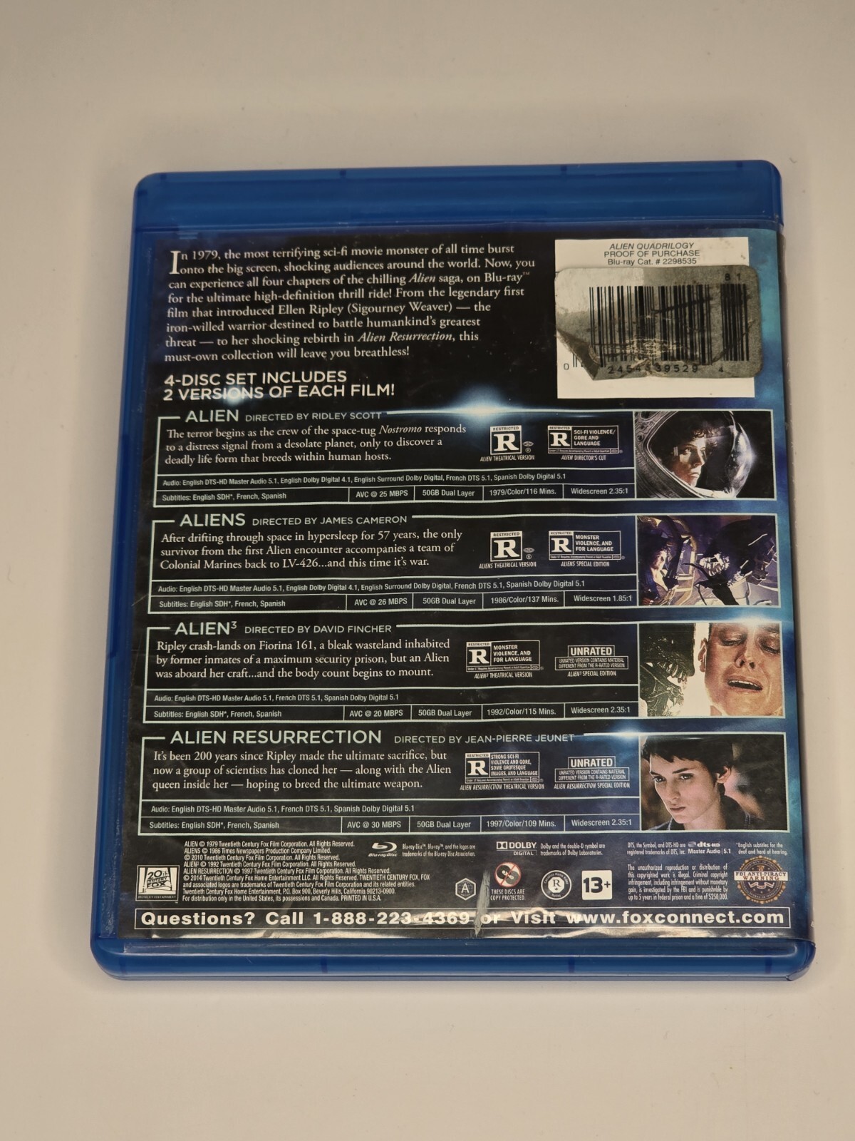 Alien Quadrilogy Blu-ray, 2014, 4-Disc Set Aliens Resurrection Sigourney Weaver