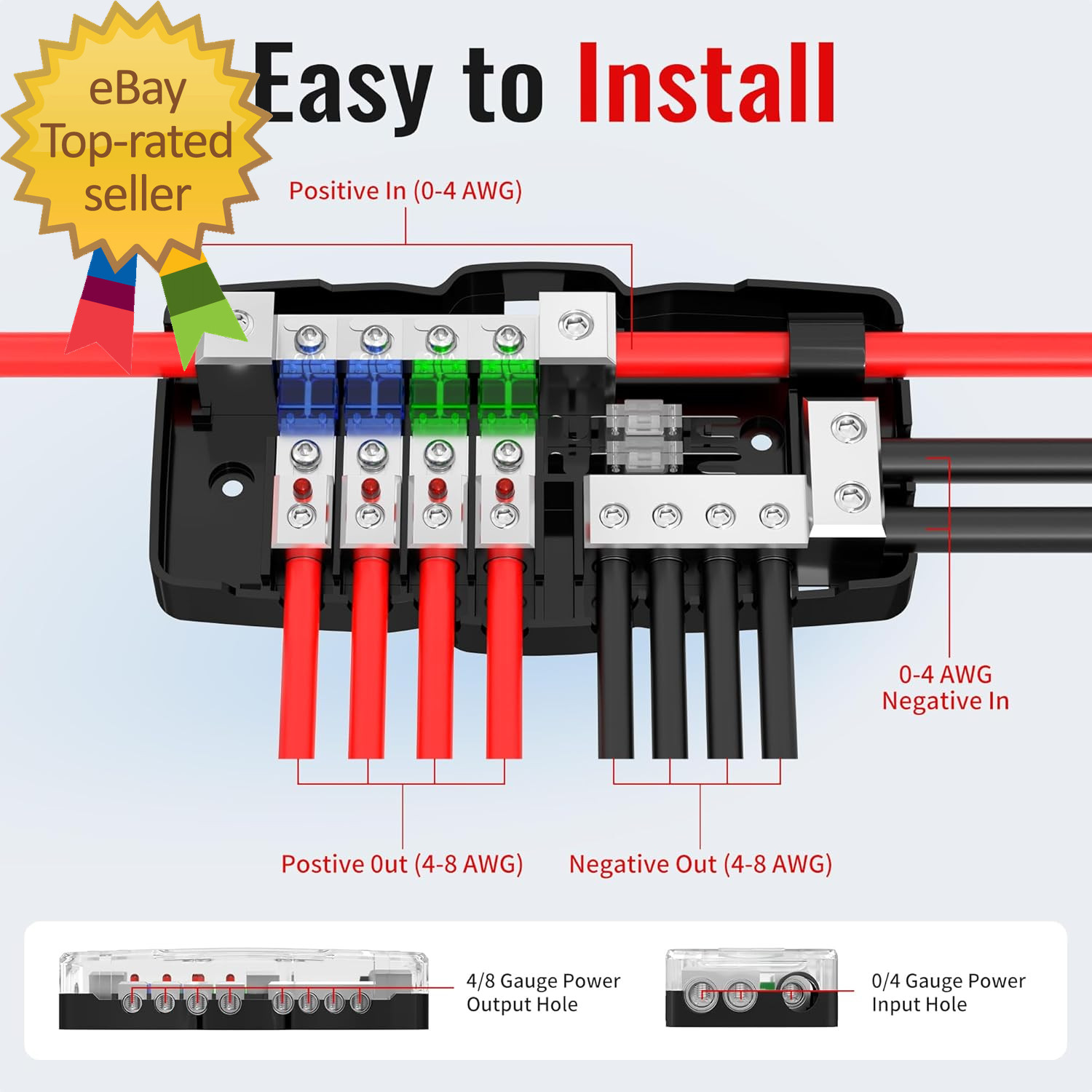 Fused Power Distribution Block Car Audio 4 Way Midi Mini-Anl Fuse Block 12V 0/4