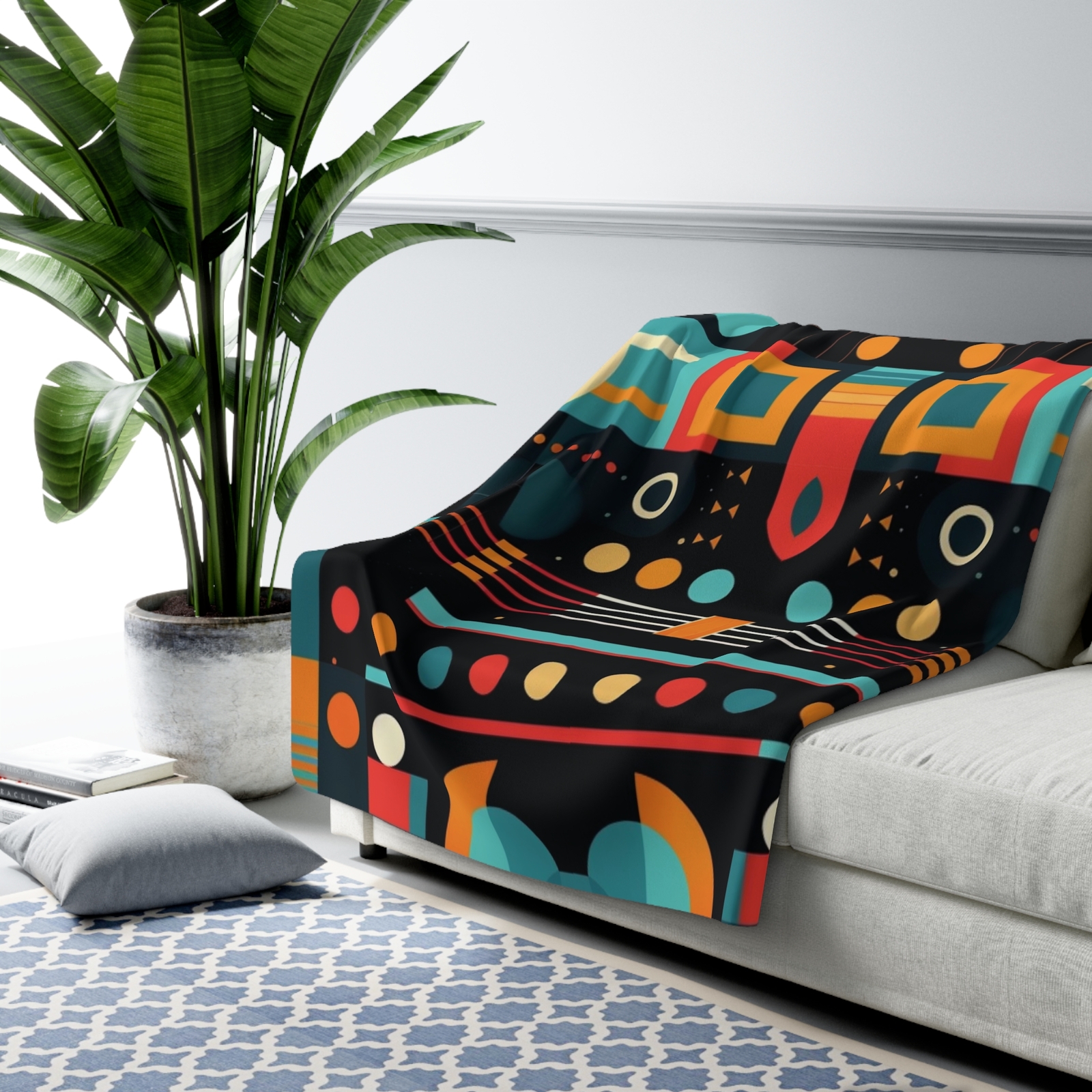 Sherpa Fleece Blanket - Soft Cozy/Hemmed Geometry In Color PG-PG-1005