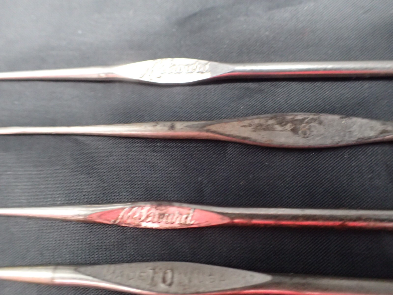 как выглядит Vintage LOT of 20 Crochet Hooks Steel Aluminum Bone Boye Assorted Brands 12 фото