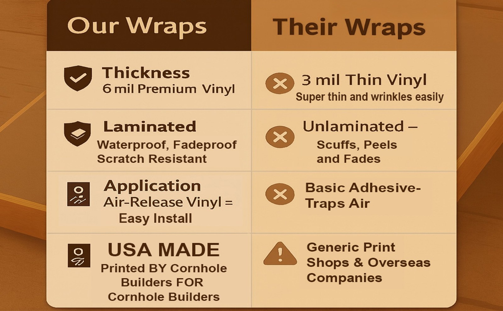How Many Cornhole Wraps (boards not included): Two (PAIR of) Cornhole Wraps