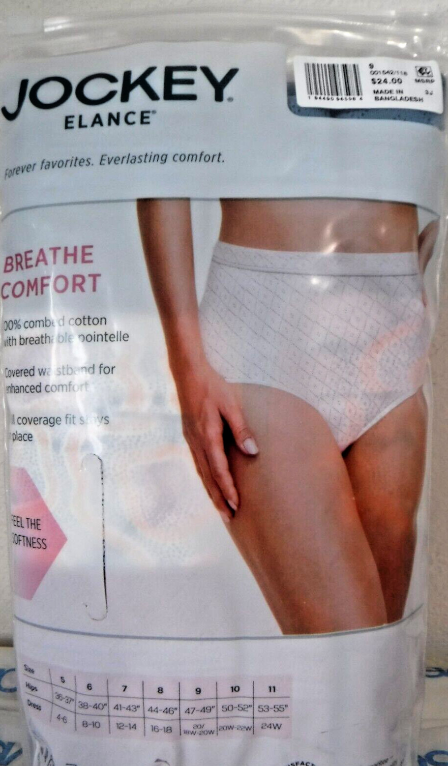 Jockey Elance Breathe 3 comfort Briefs 100 cotton Pointelle sz 9 Blue plum mix
