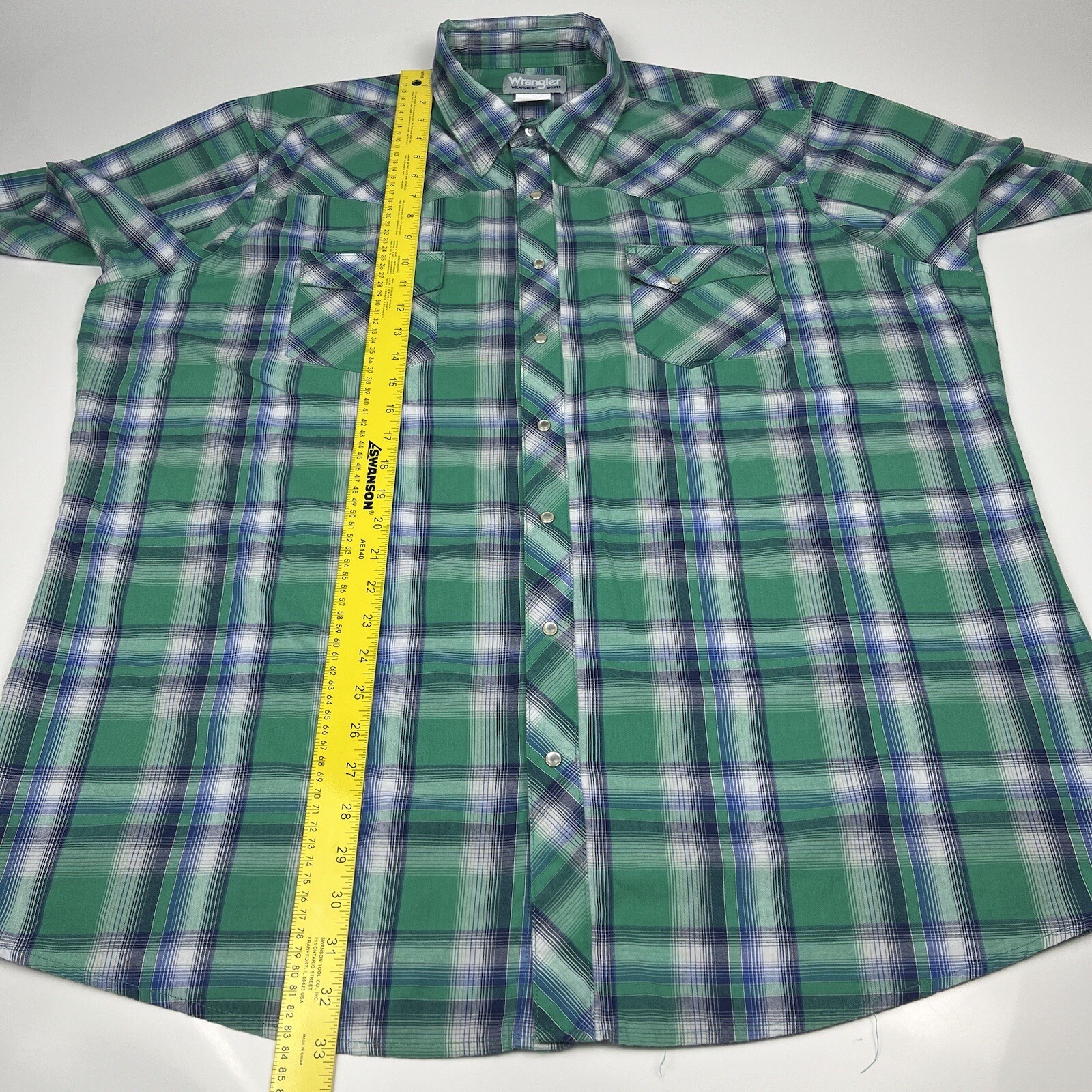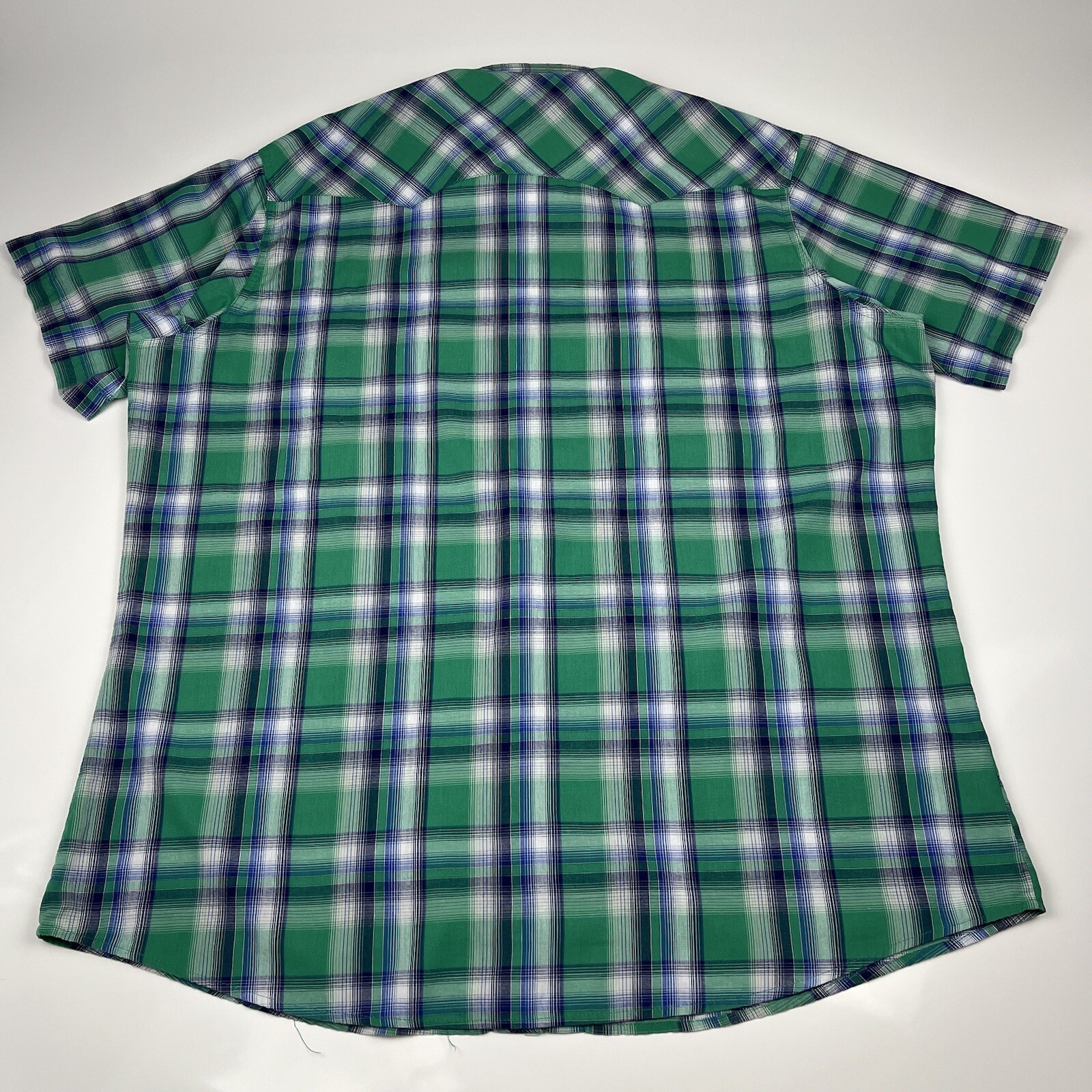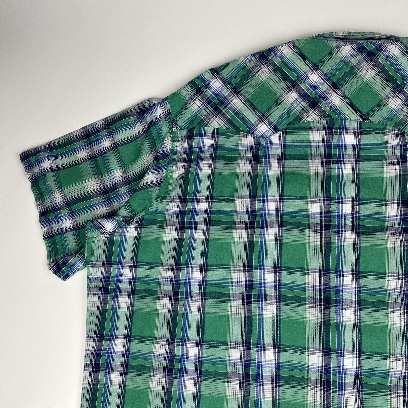 как выглядит Vintage 90s Wrangler Western Shirt Blue Green Plaid Pearl Snaps Mens 2XL XXL фото