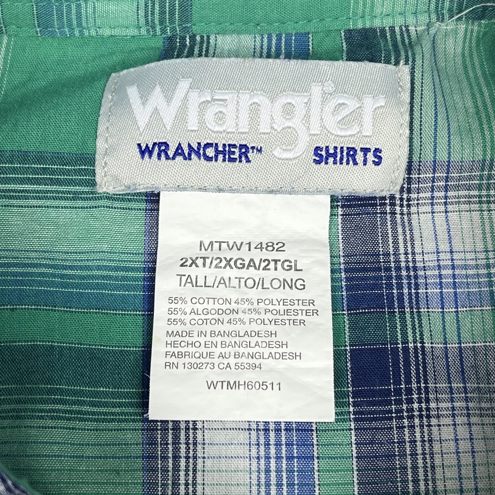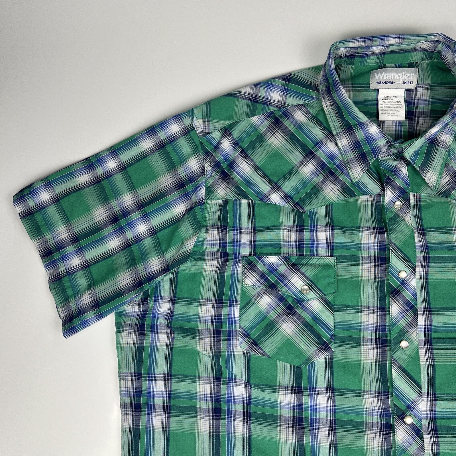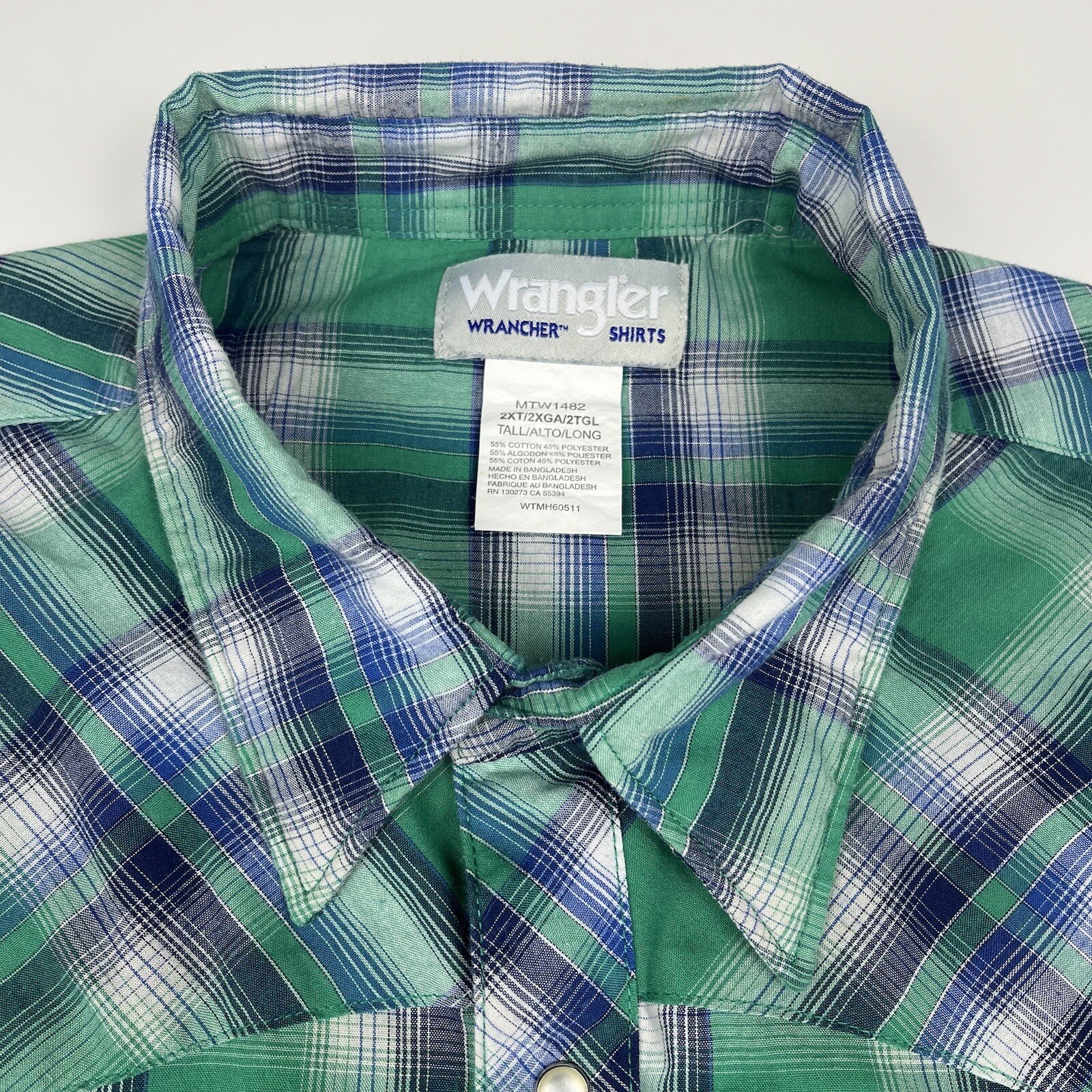 как выглядит Vintage 90s Wrangler Western Shirt Blue Green Plaid Pearl Snaps Mens 2XL XXL фото