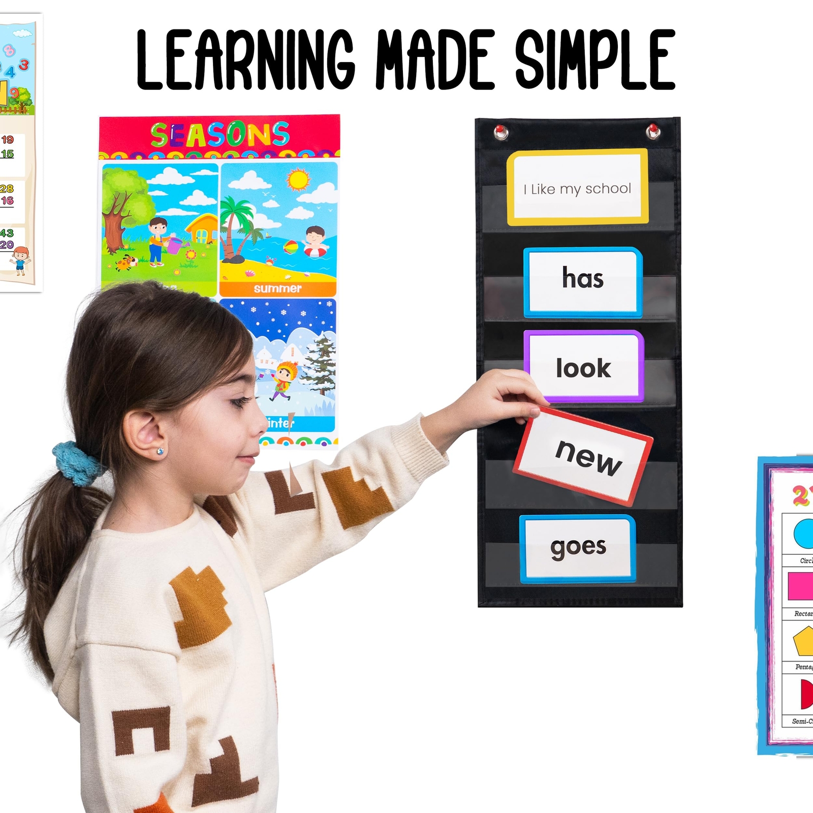 - 9 Wide x 22 Tall Pocket Chart Black - Sturdy Pocket Chart for Classroom f...
