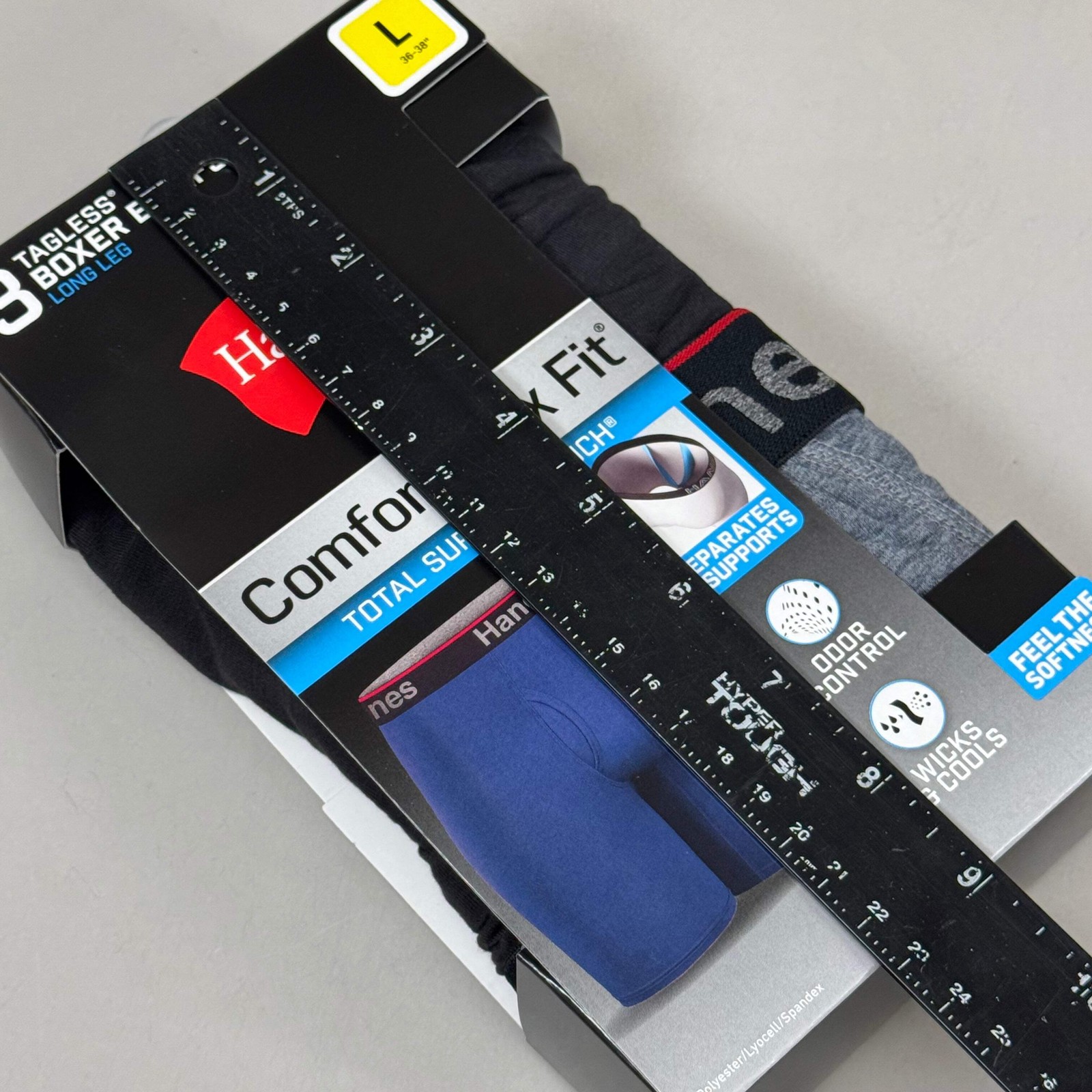 HANES 3 PACK Men's Cool Comfort Boxer Briefs Sz L 36-38 Black/Grey CFFLL3