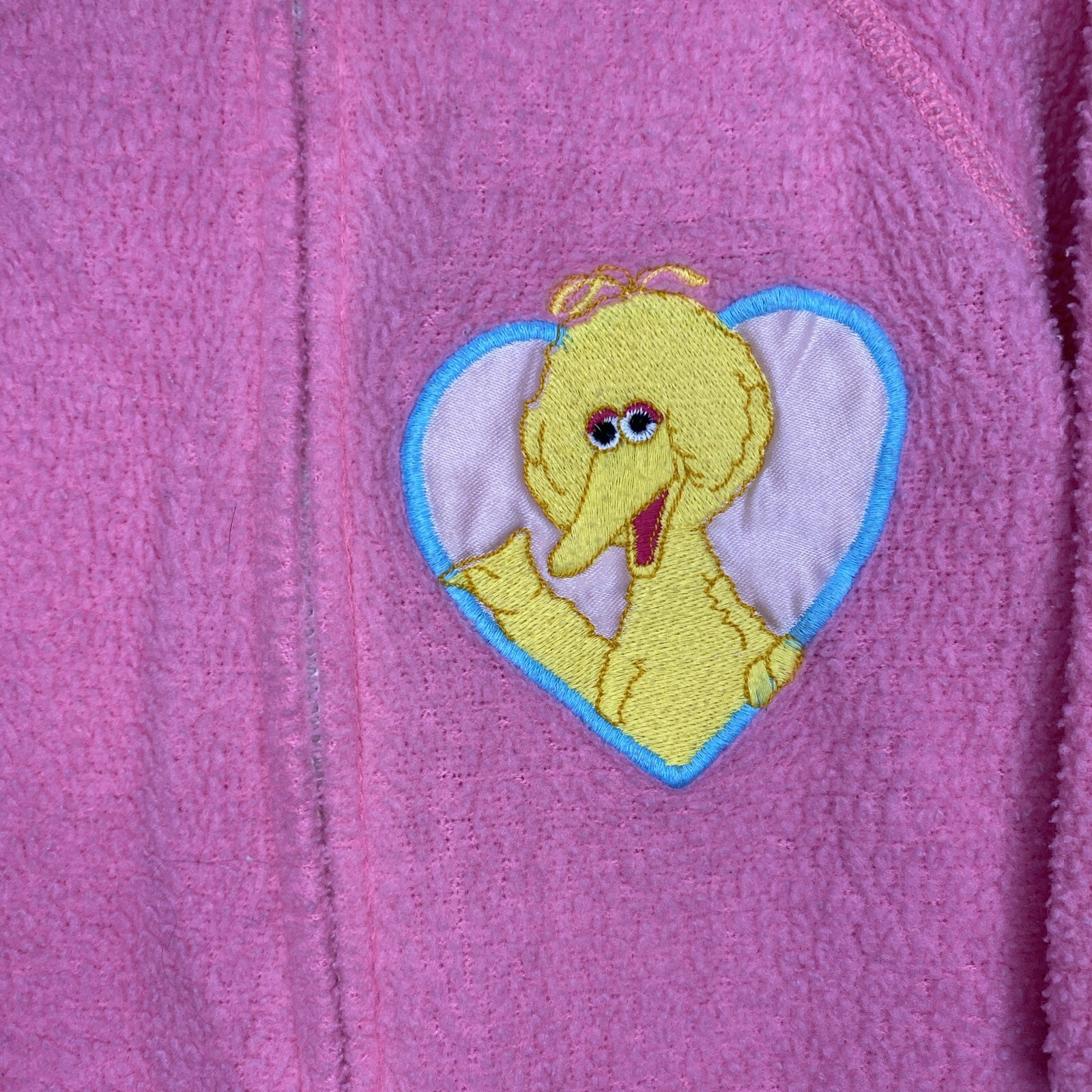 как выглядит Vintage Sesame Street Embroider Big Bird Heart Grip Footie Pink Stripe Pajama 3T фото