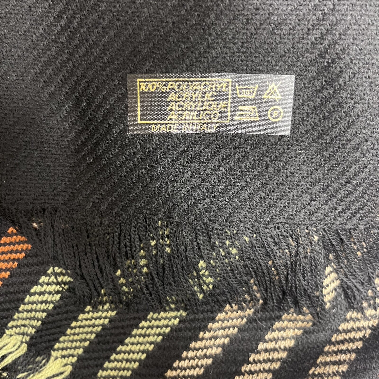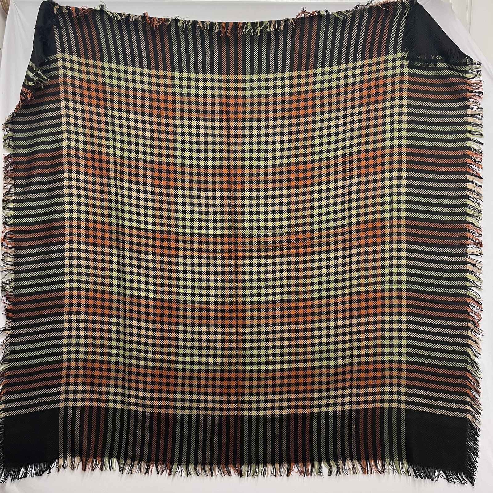 Vintage Scarf Wrap Shawl Plaid With Fringes Black Orange Beige Green 53 x 53