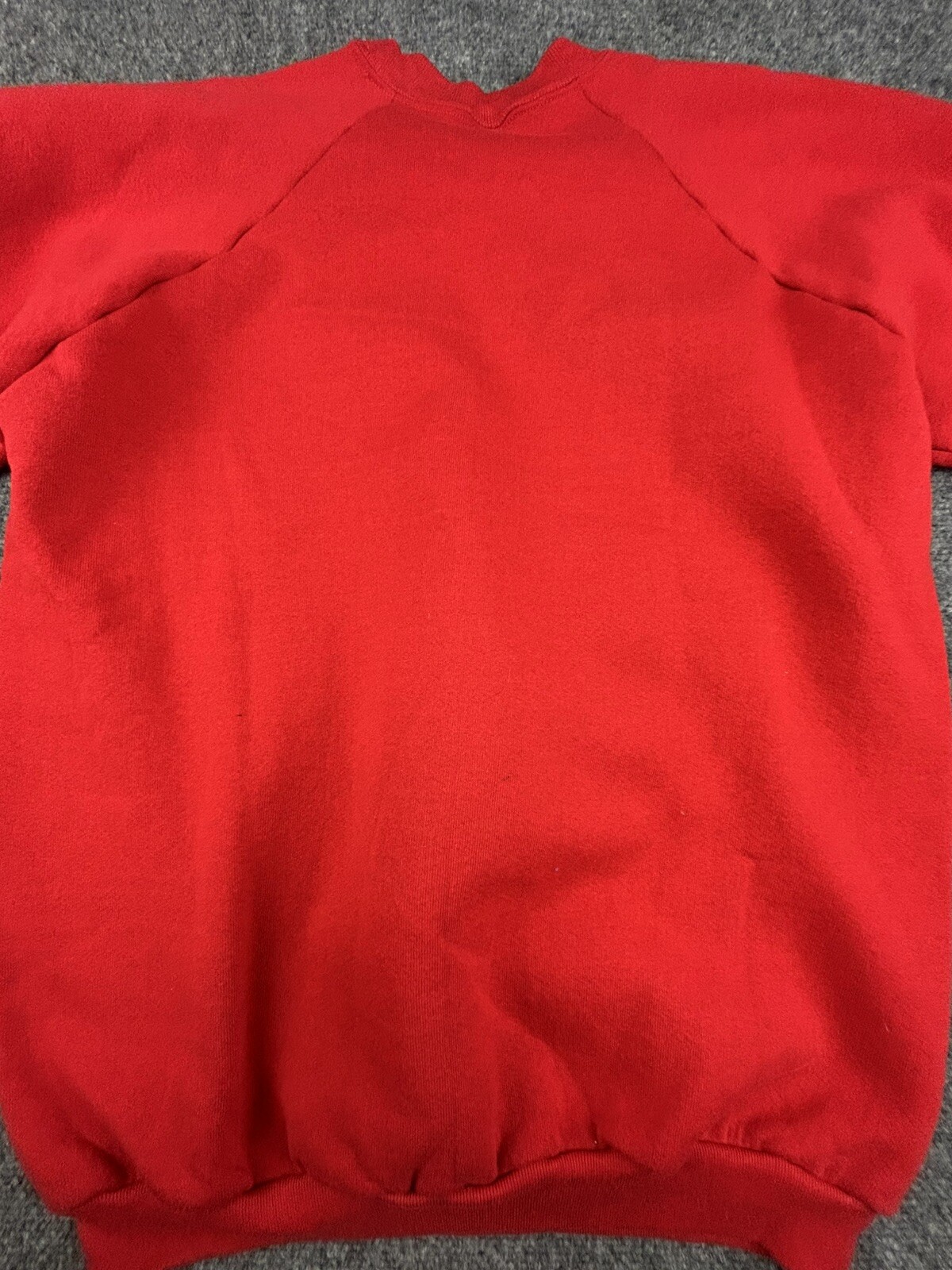 как выглядит Vintage Fruit of the Loom Sz XL BLANK Crewneck Sweatshirt MADE IN USA Red 90s e фото