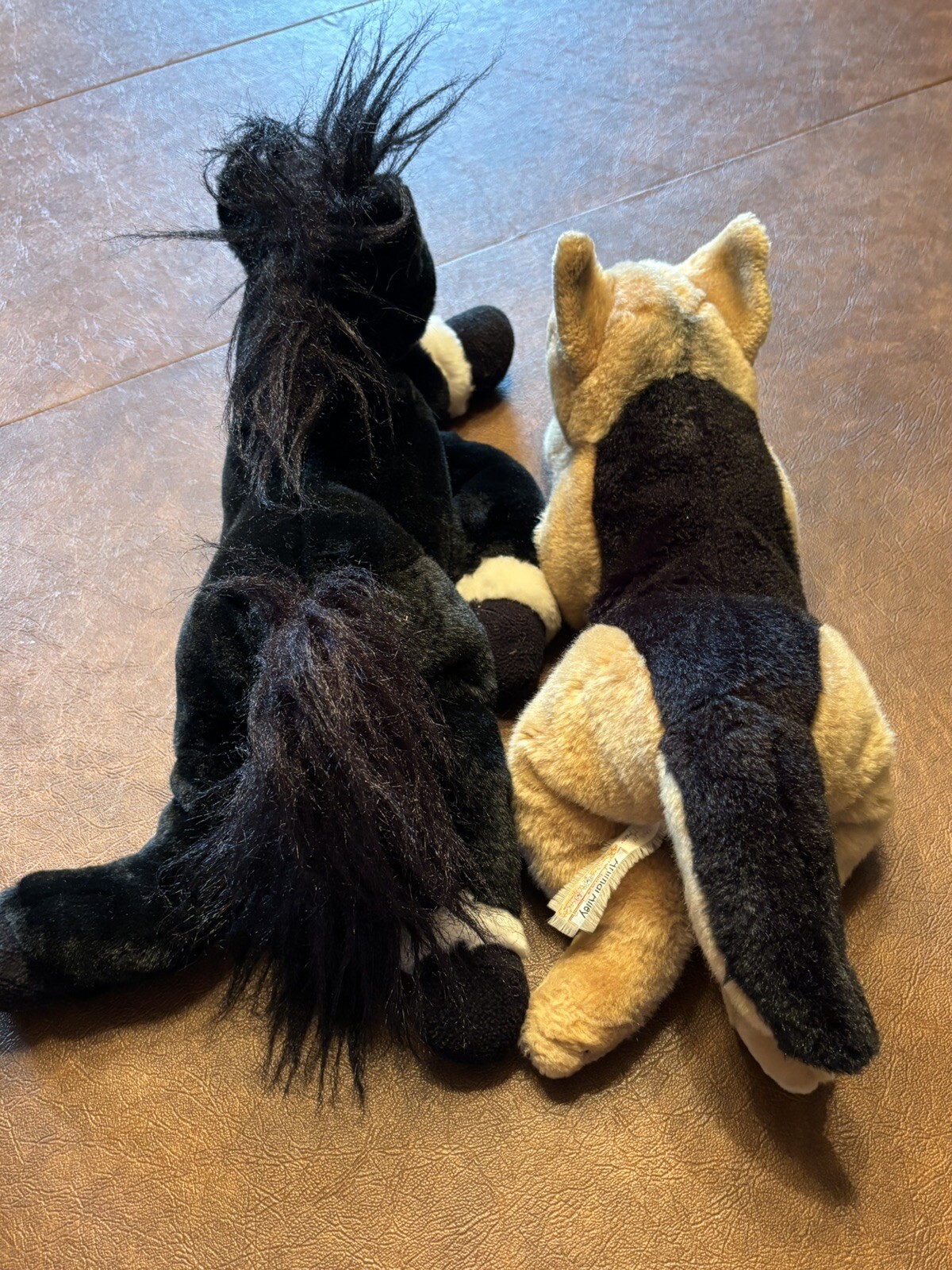 Two Vintage Stuffed Animal Alley Toys of Toys R US- Dog Black Horse.