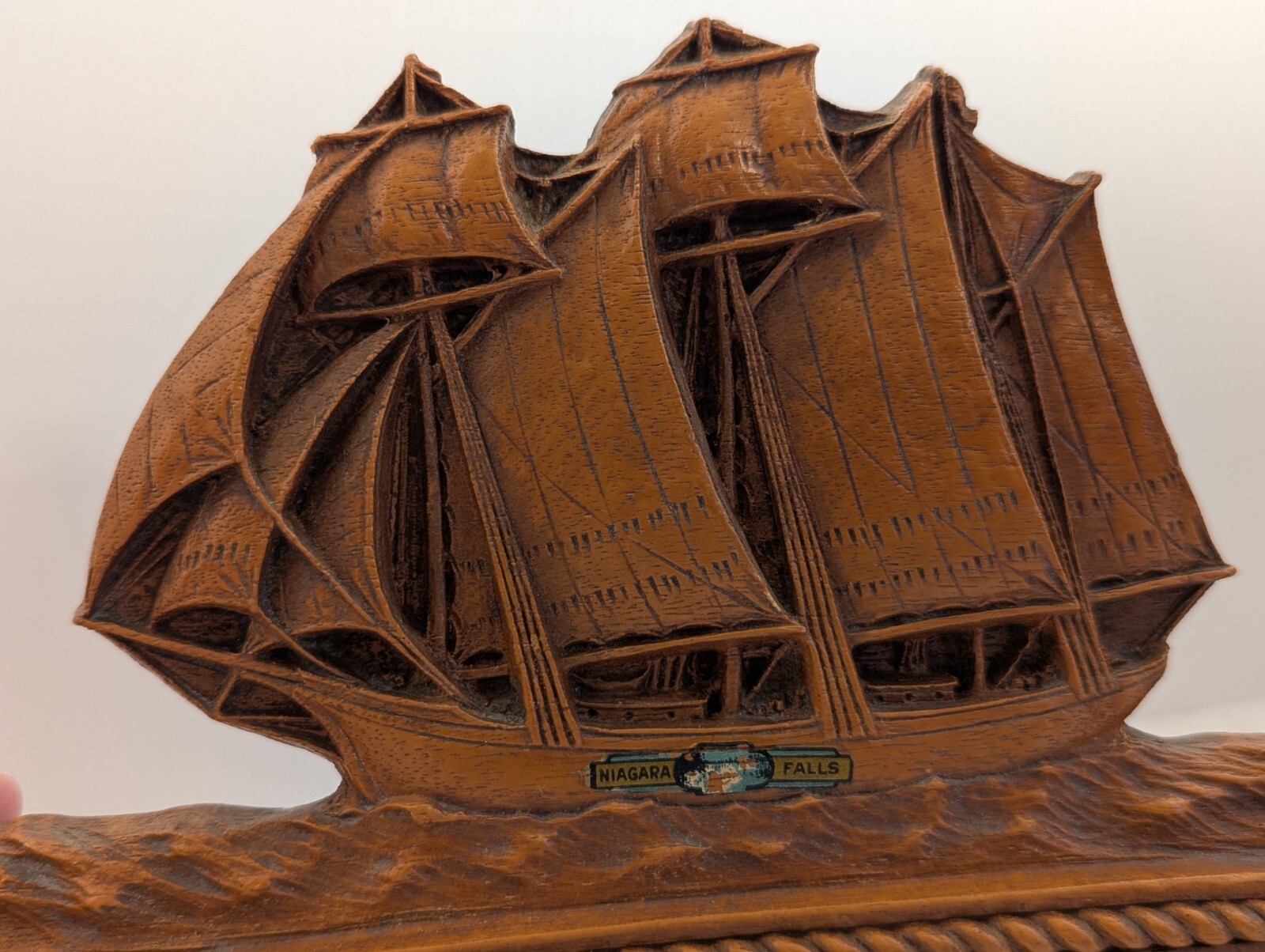 как выглядит Vintage Syrocowood Tie Scarf Hanger Talk Ship Niagara Falls фото