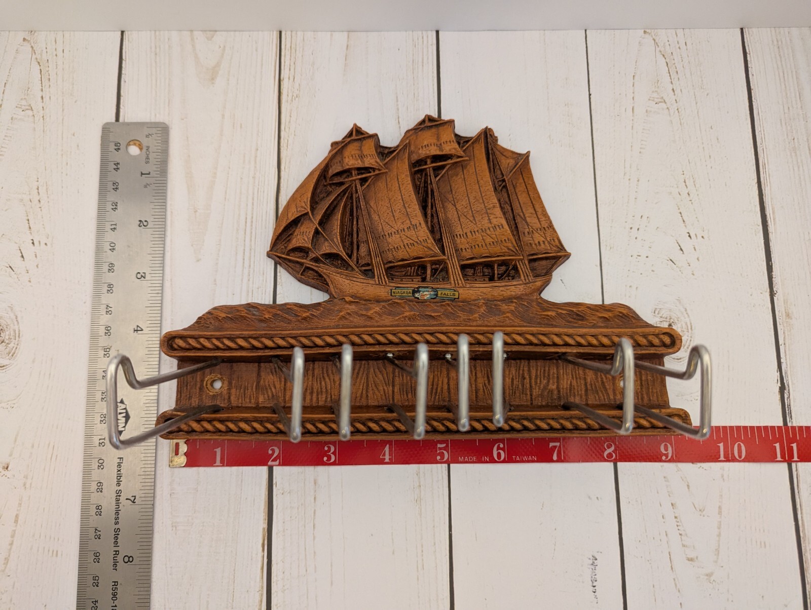 Vintage Syrocowood Tie Scarf Hanger Talk Ship Niagara Falls