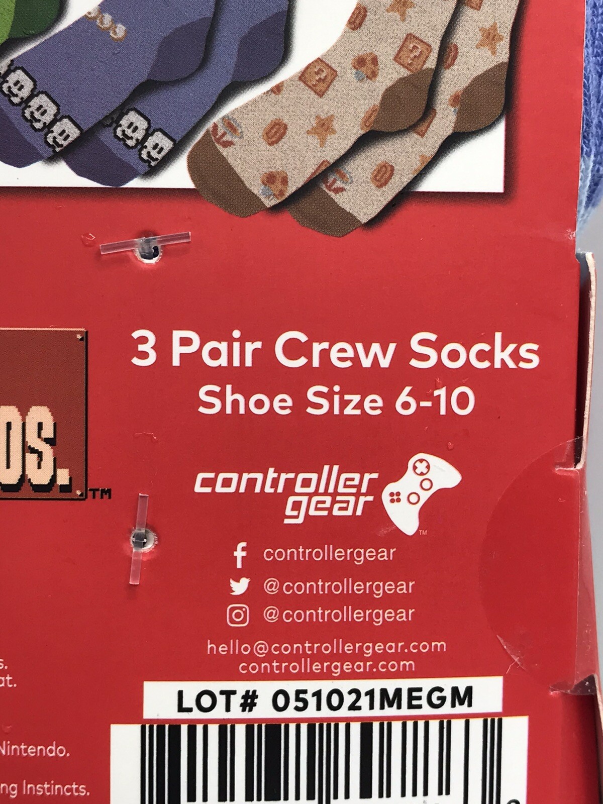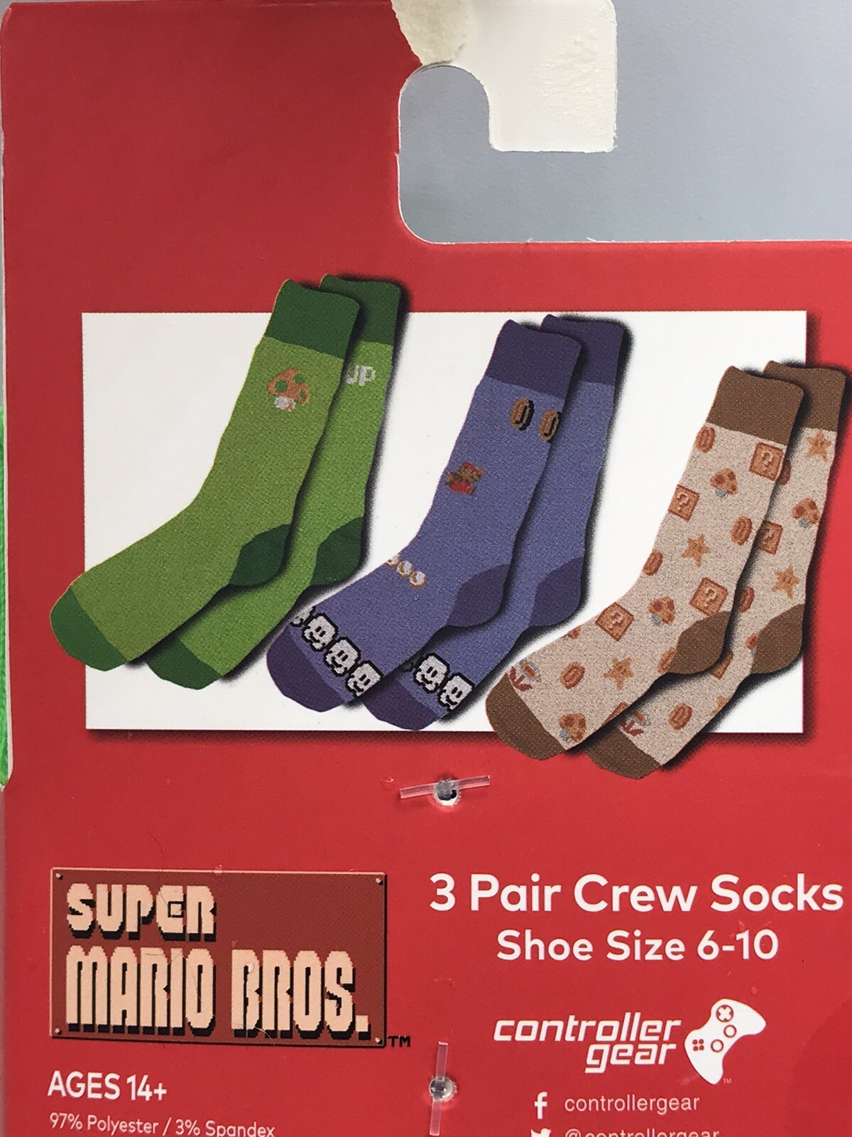 Super Mario Bros. 3 Pair Crew Socks Shoe Size 6-10 - Fire Flower