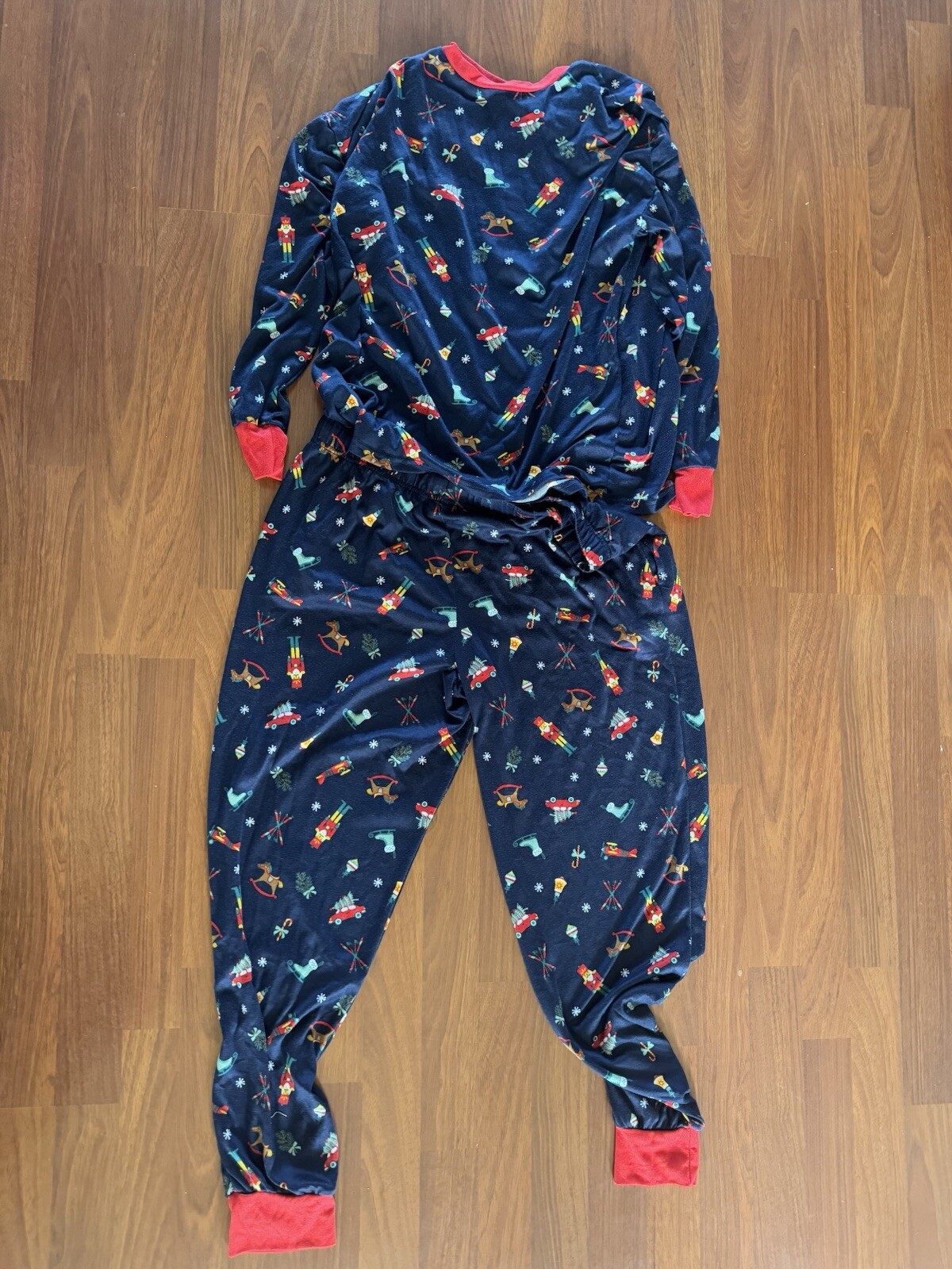 как выглядит Members Mark Navy Blue Ladies Holiday Pajama Set - Size Large - Super Soft фото