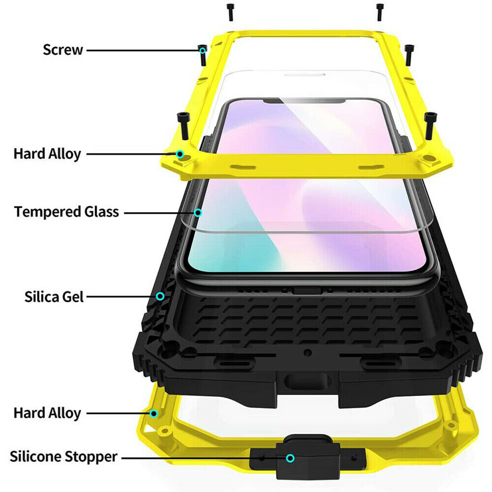 Kickstand Stand Holder, Life Waterproof Water-Resistant, Military Grade Armor, Rugged Heavy Duty Hybrid, Screen Protective Film, Alloy Metallic Silica Rubber Gel |