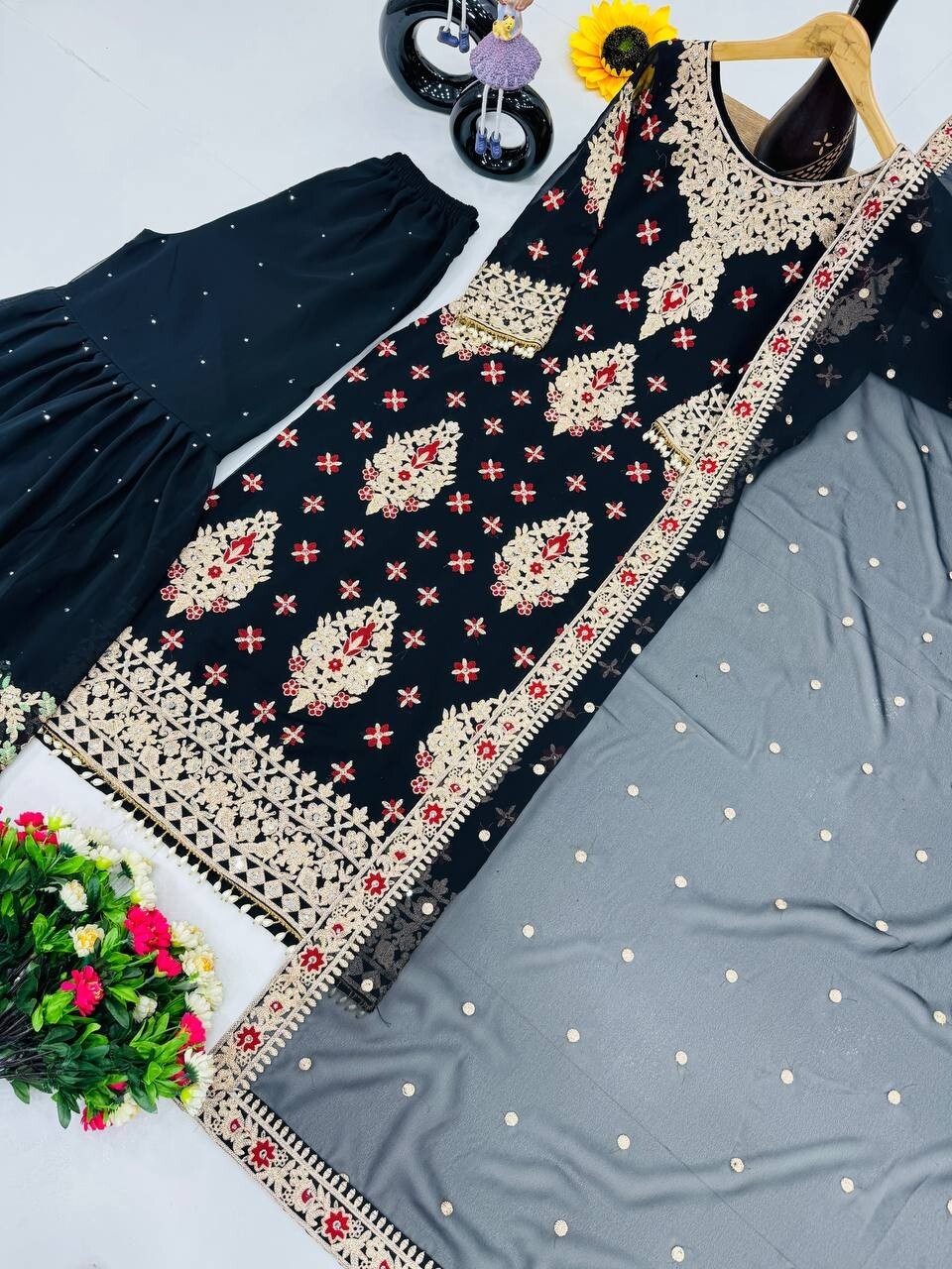 как выглядит Presenting New Faux Georgette Kurta Palazzo With Dupatta For Women And Girls фото