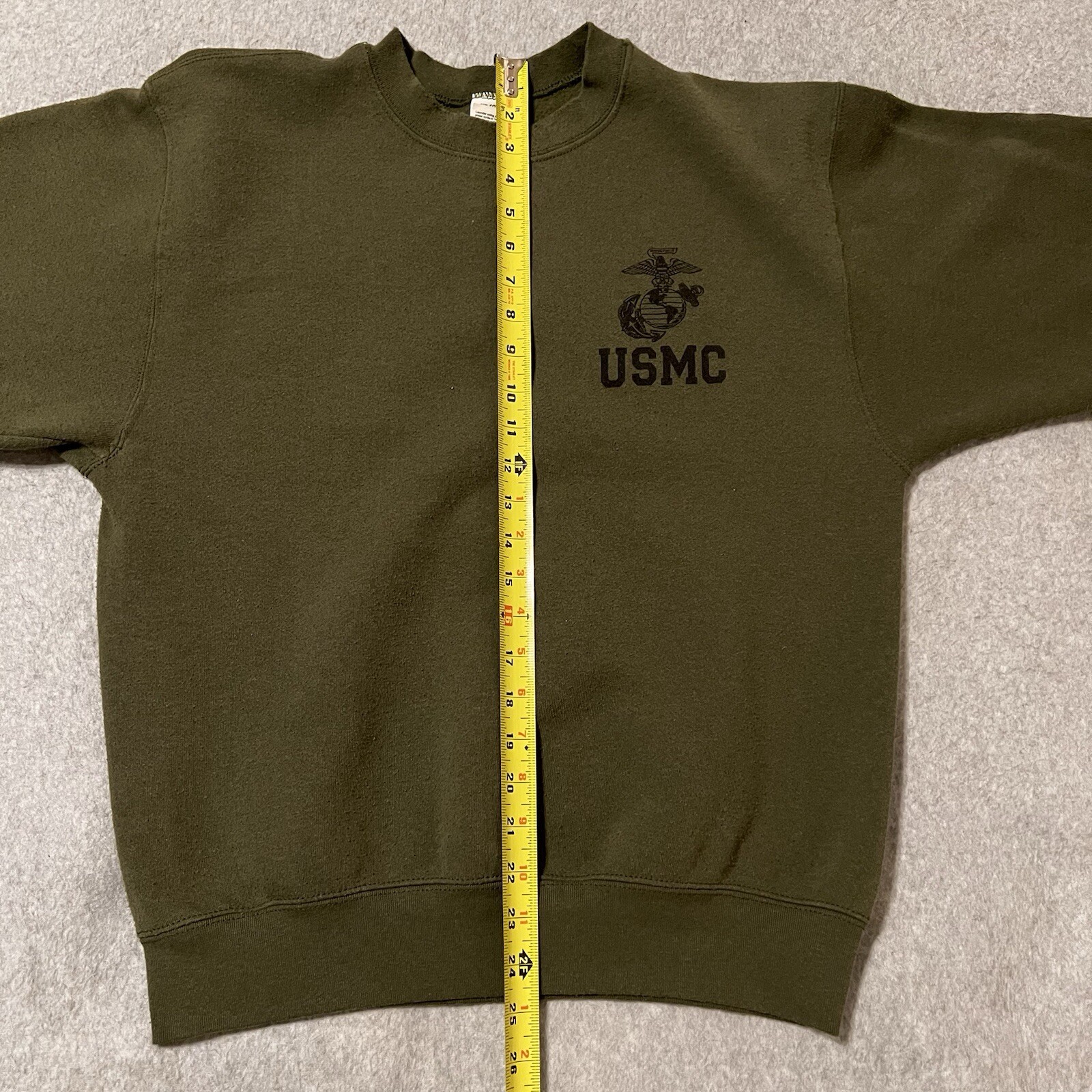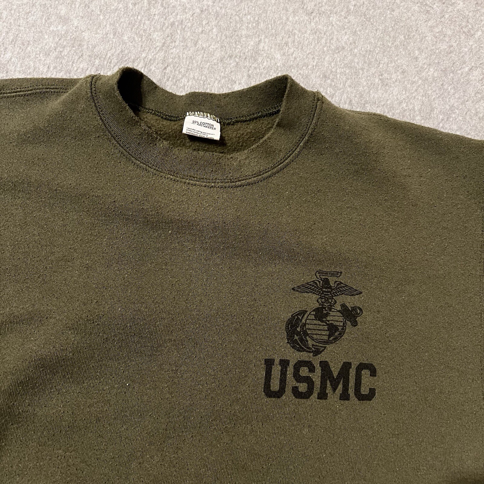 как выглядит USMC PT Sweatshirt Mens Medium OD Green Logo Spellout Made In USA Military Issue фото