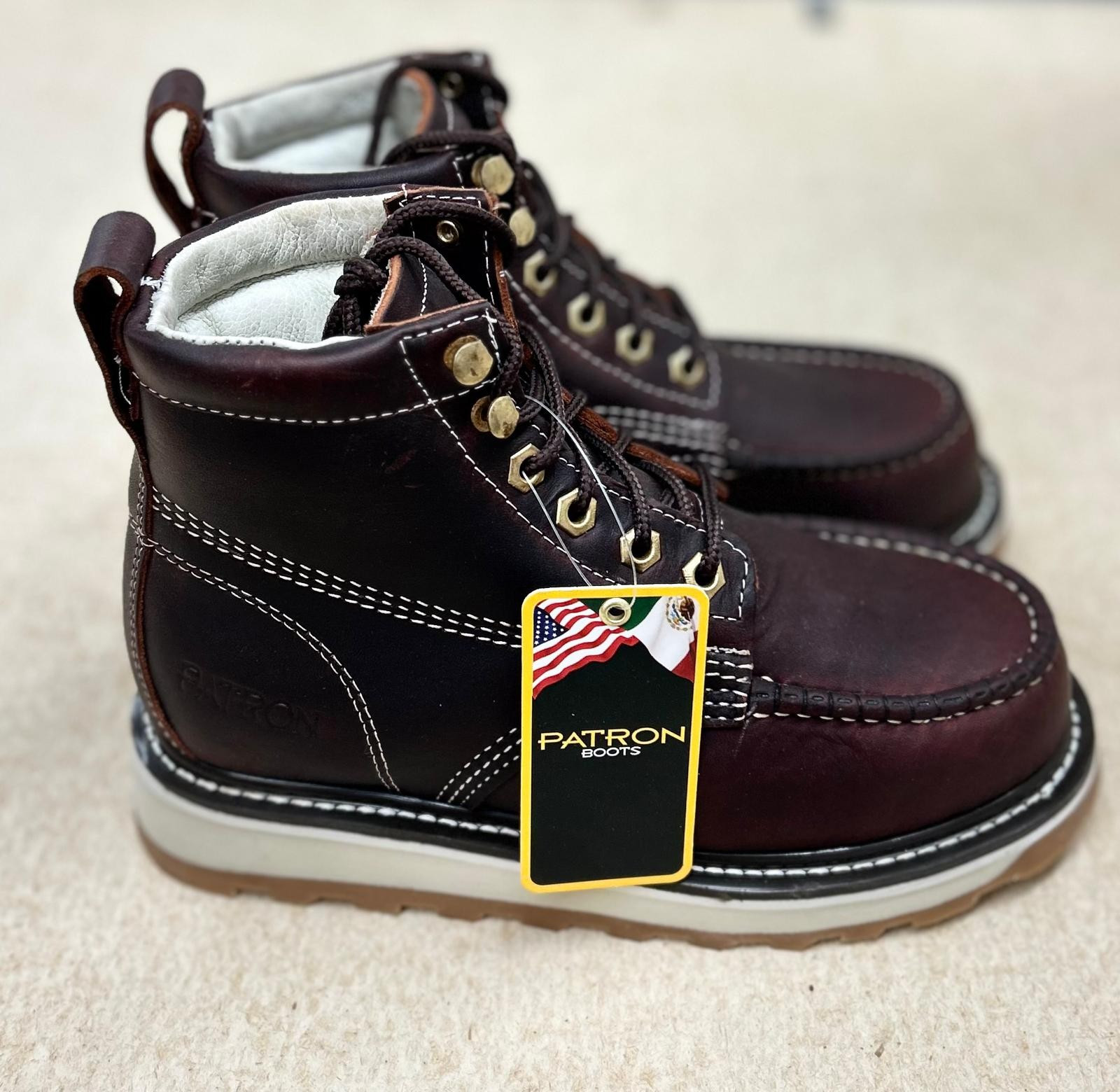 как выглядит MENS PATRON BOTAS DE TRABAJO GENUINE LEATHER LACE UP SOFT TOE WINE BOOTS фото