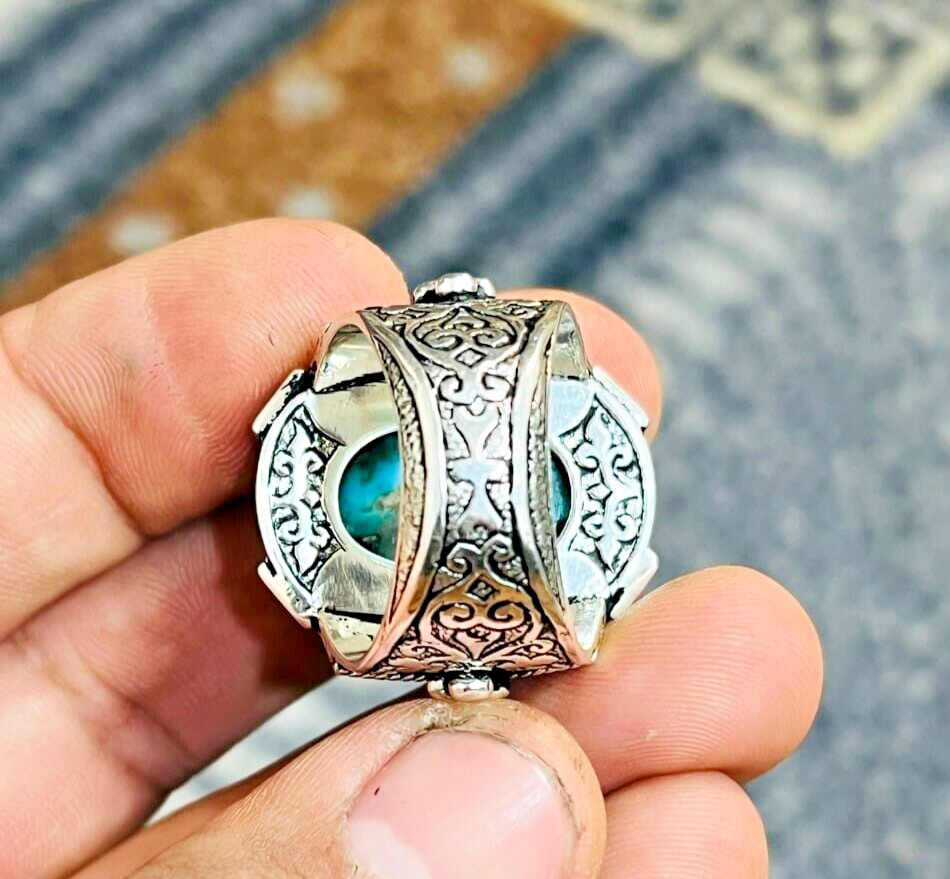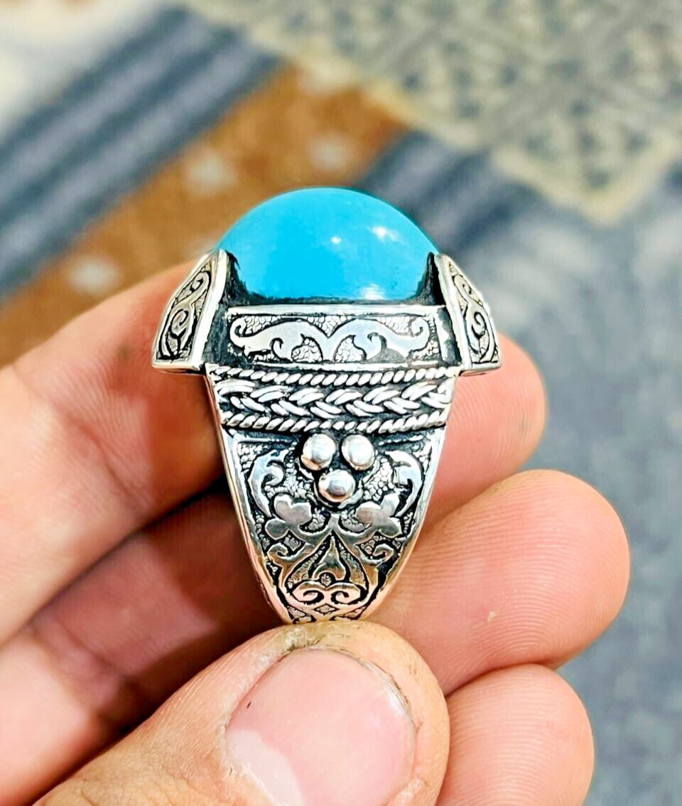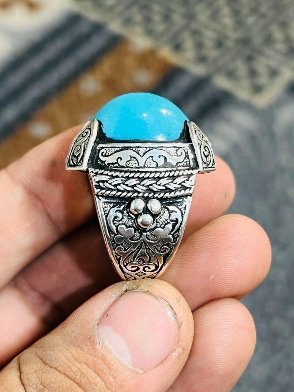 Natural Nishapur Turquoise Ring Blue Feroza Hand made Classical Ring Men's wear