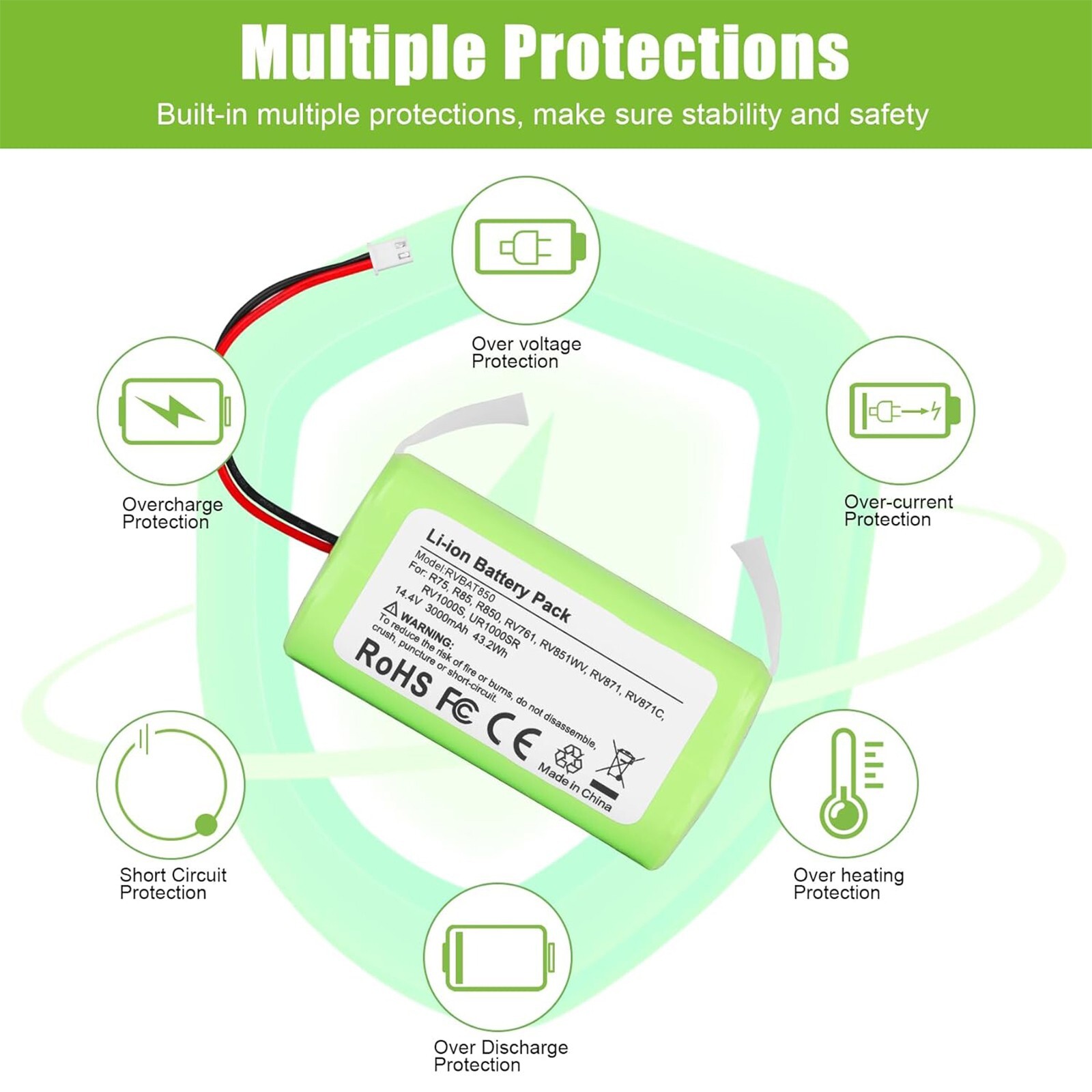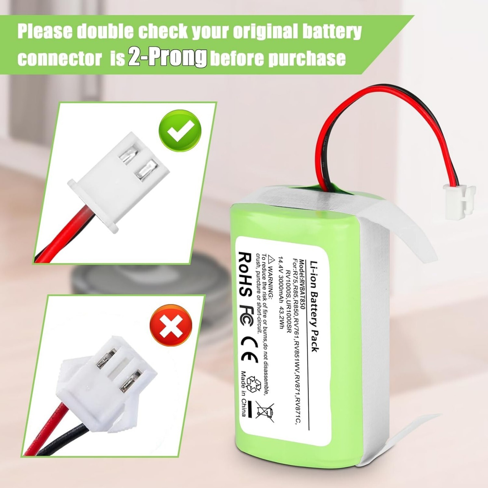 RVBAT850 Battery for Shark Ion Robot Vacuum RV1001AE AV753 14.4V 3000mAh 2-Prong