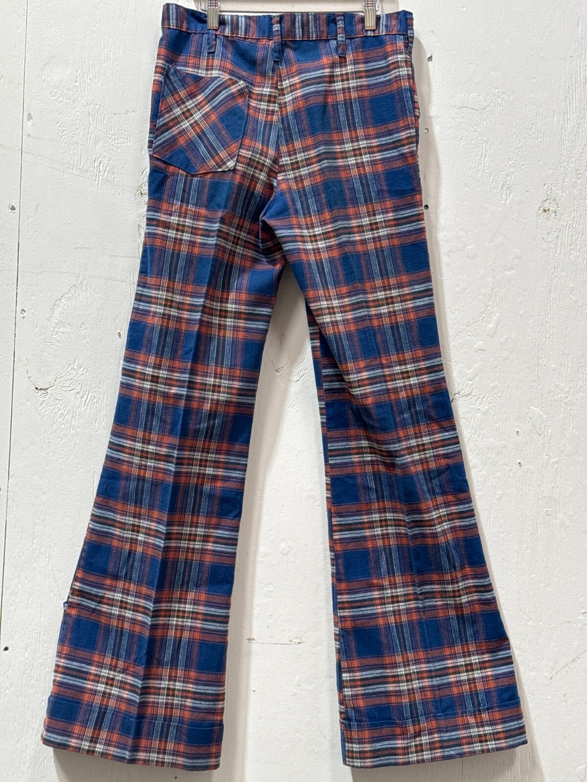 Vintage 1970s Tads Plaid Bell Bottoms Deadstock Pants Blue red Orange White