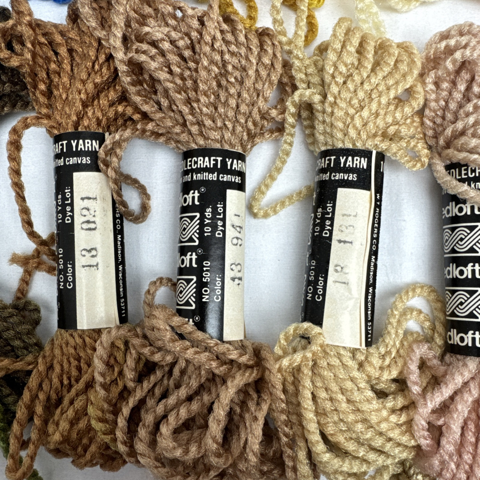 18 Lg White Skein Lot Needloft Plastic Canvas Nylon Yarn Black Brown Pink Blue