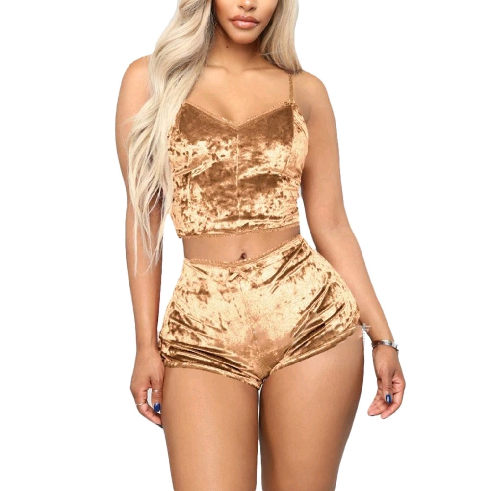 Velvet Woman's Pyjama Set Solid Backless Sleepwear Casual Green 3XL 18