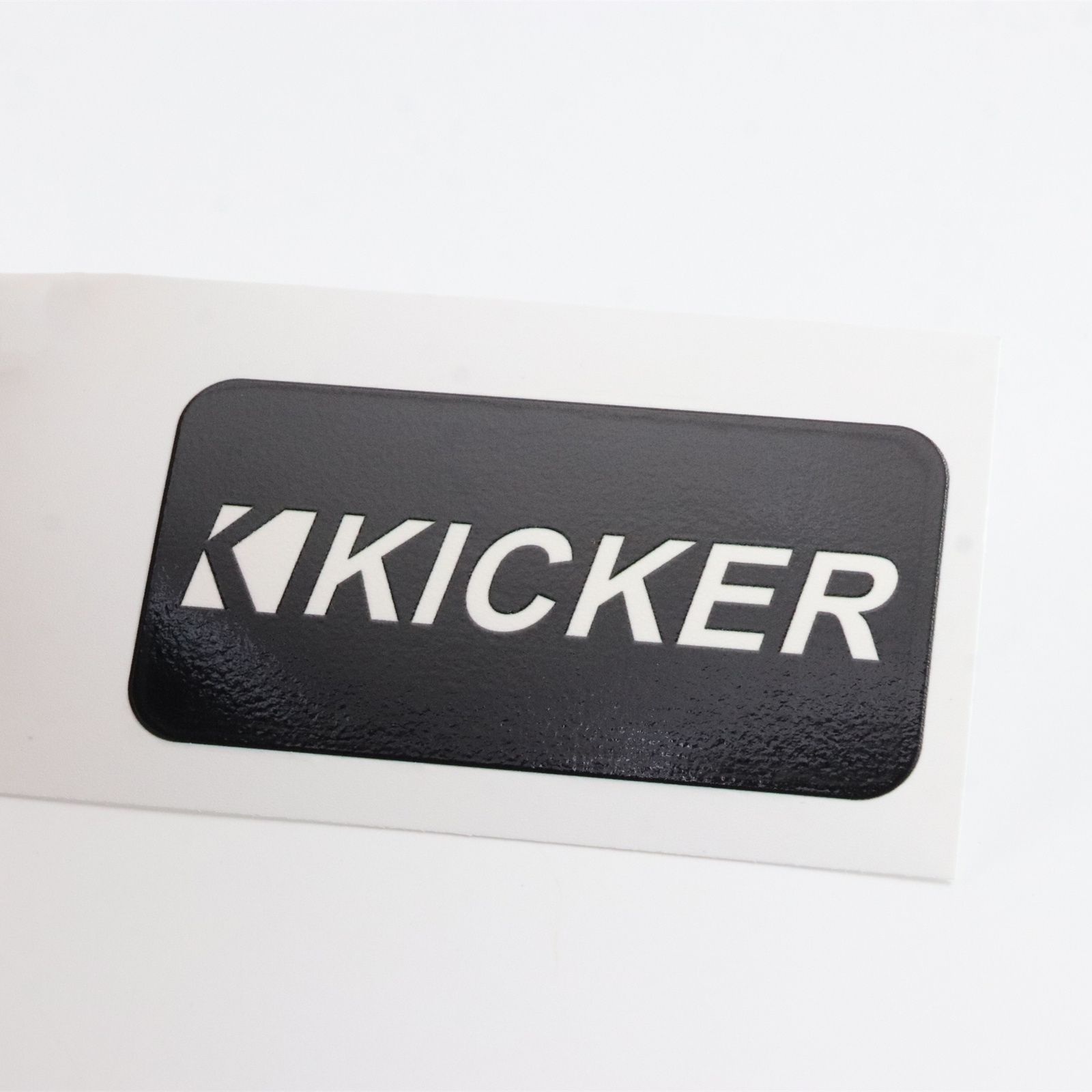 как выглядит Kicker logo badge Sticker Decal waterproof 77mm 3" X 38mm 1.5" black фото