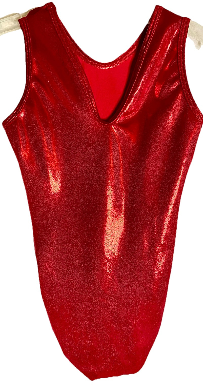 ALPHA FACTOR RED SPARKLY FOIL LEOTARD GYMNASTICS DANCE SIZE CL CHILD LARGE