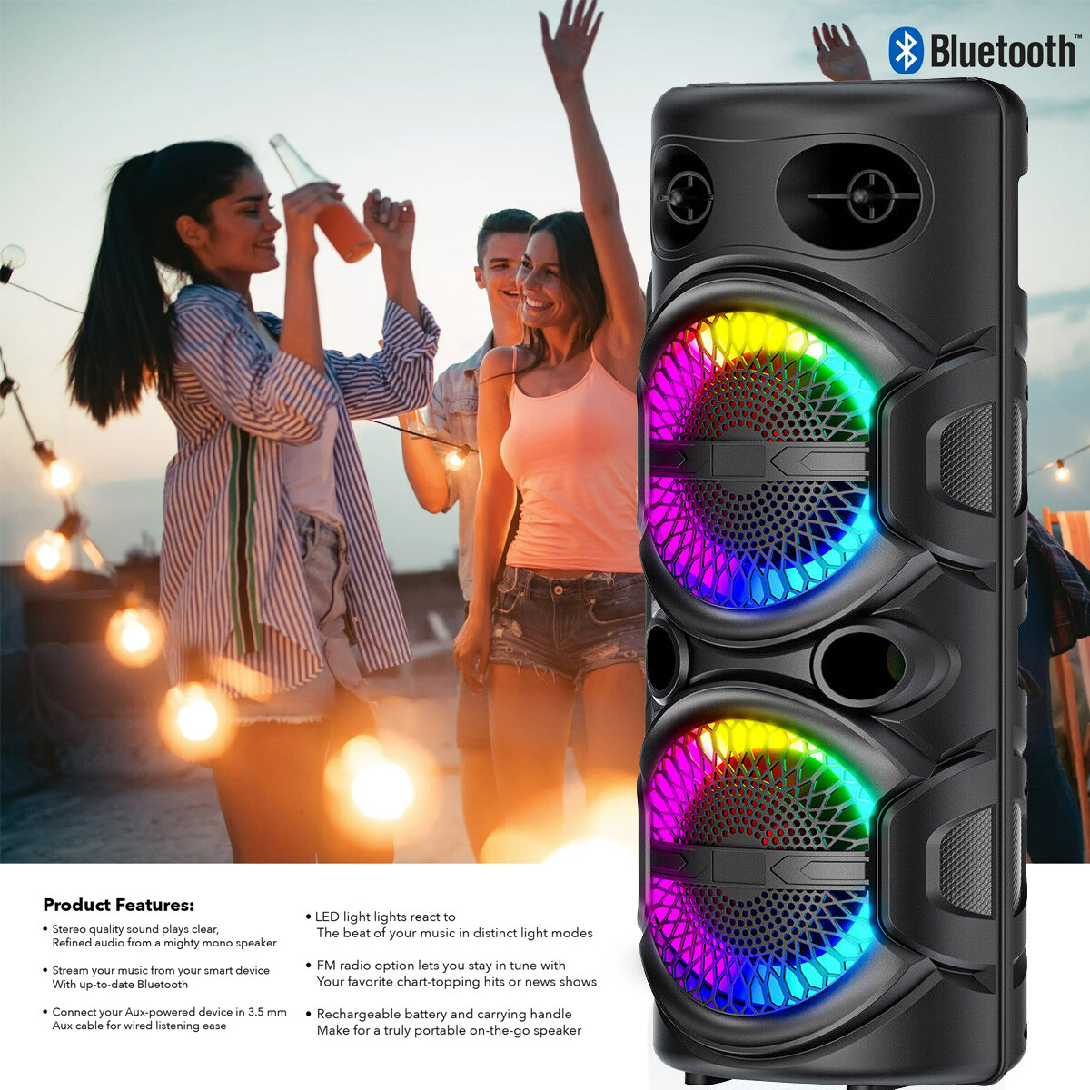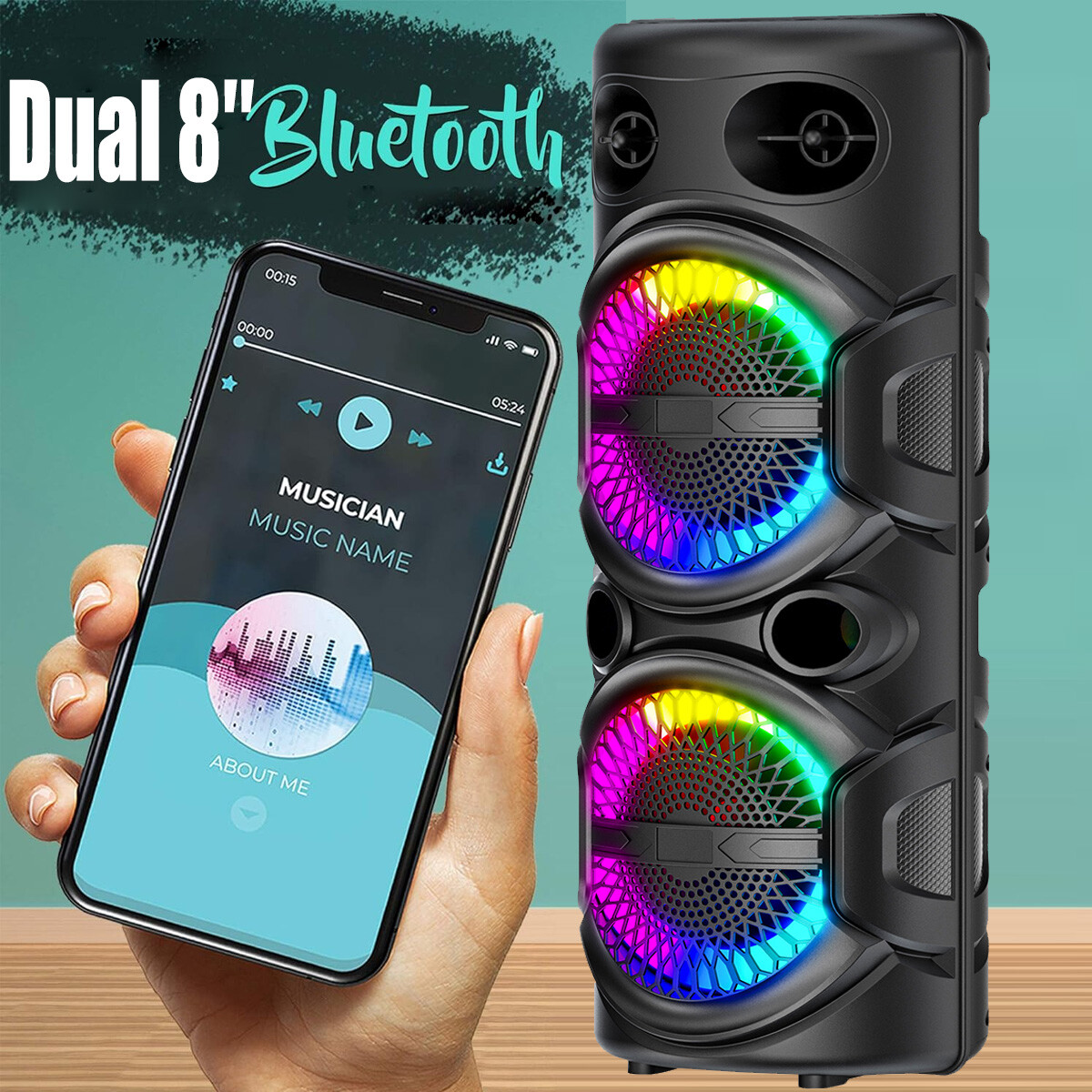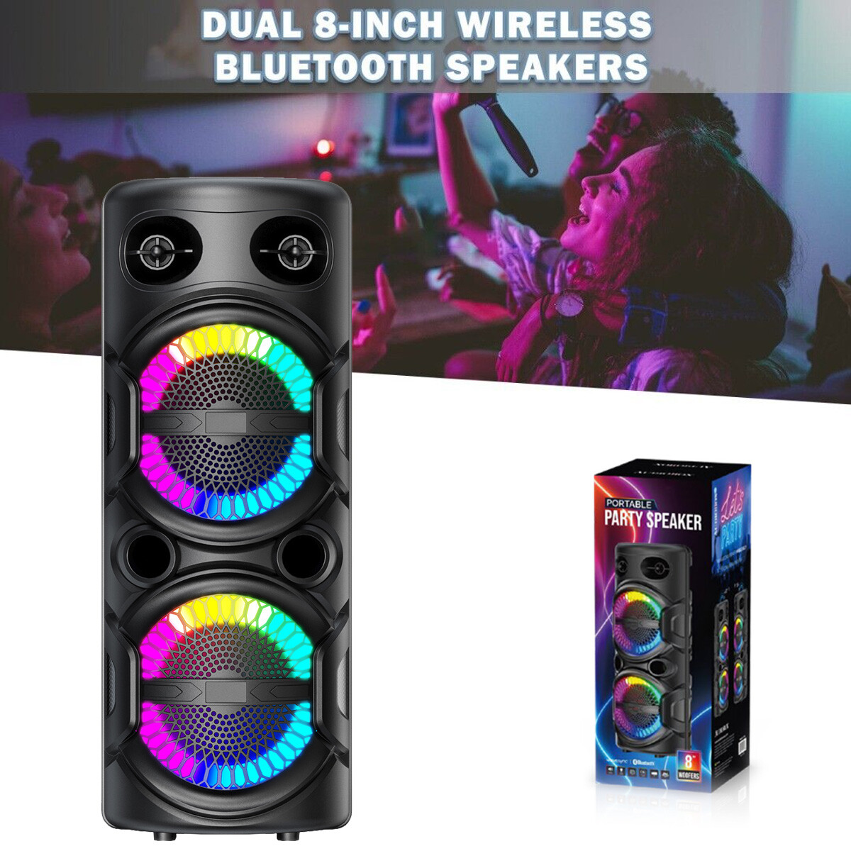 Dual 8'' Portable Bluetooth PA Speaker Rechargeable Karaoke Audio System TWS FM