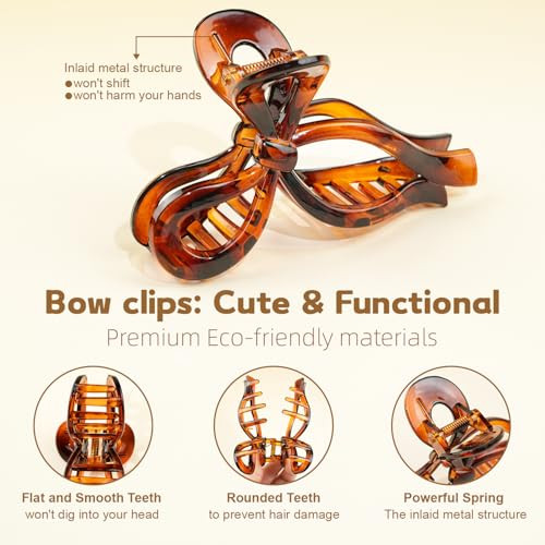 4.3 Inch Cute Bow Hair Clips for Women, Large Claw Clips for Thin Fine Long