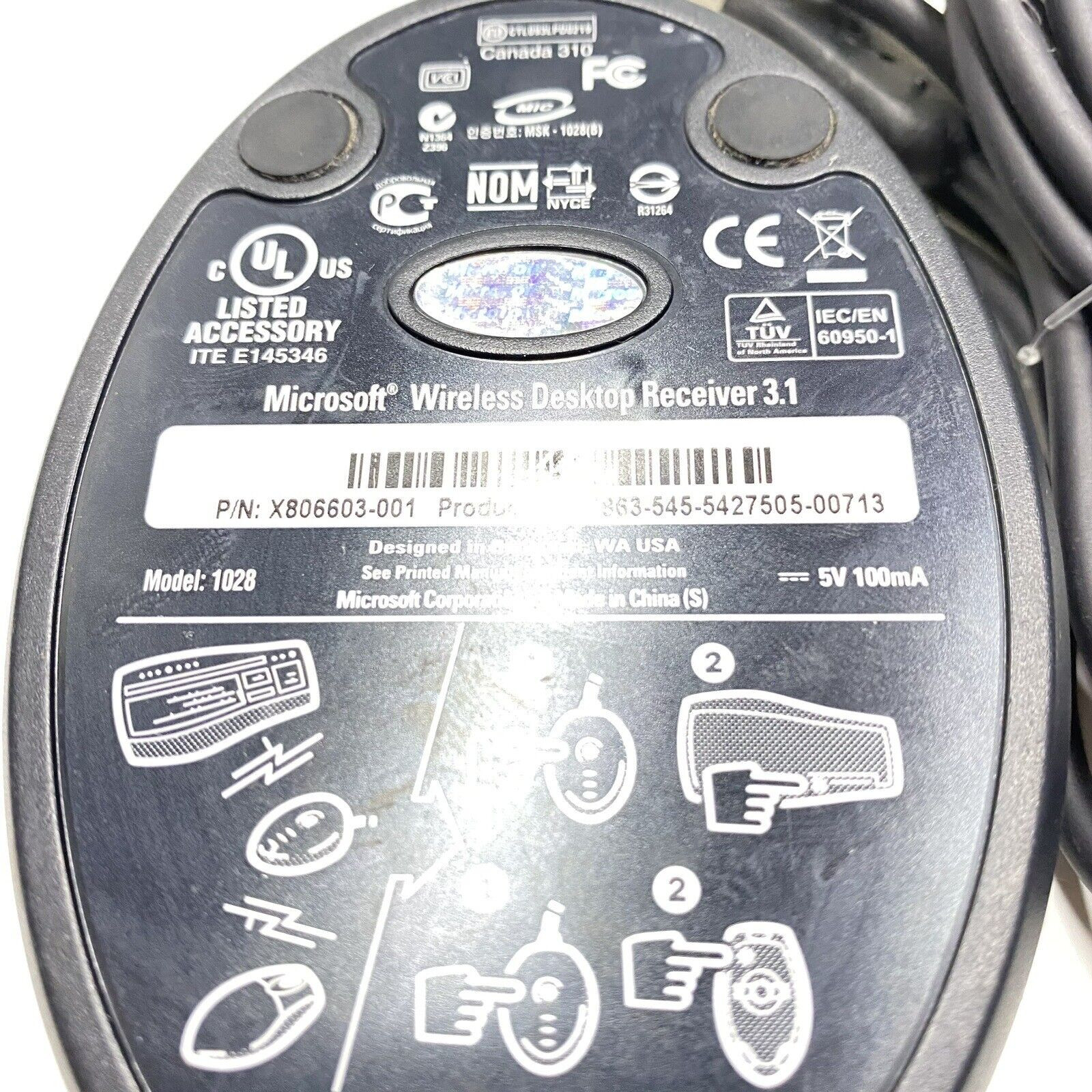 Microsoft 1028 Wireless Black Optical Desktop Receiver 3.1 P/N X806603-001
