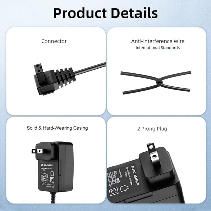 2-Prong 12.6V Adapter For QT QOMOTOP HJ1103J 5000mAh Pool Vacuum Cleaner 9920