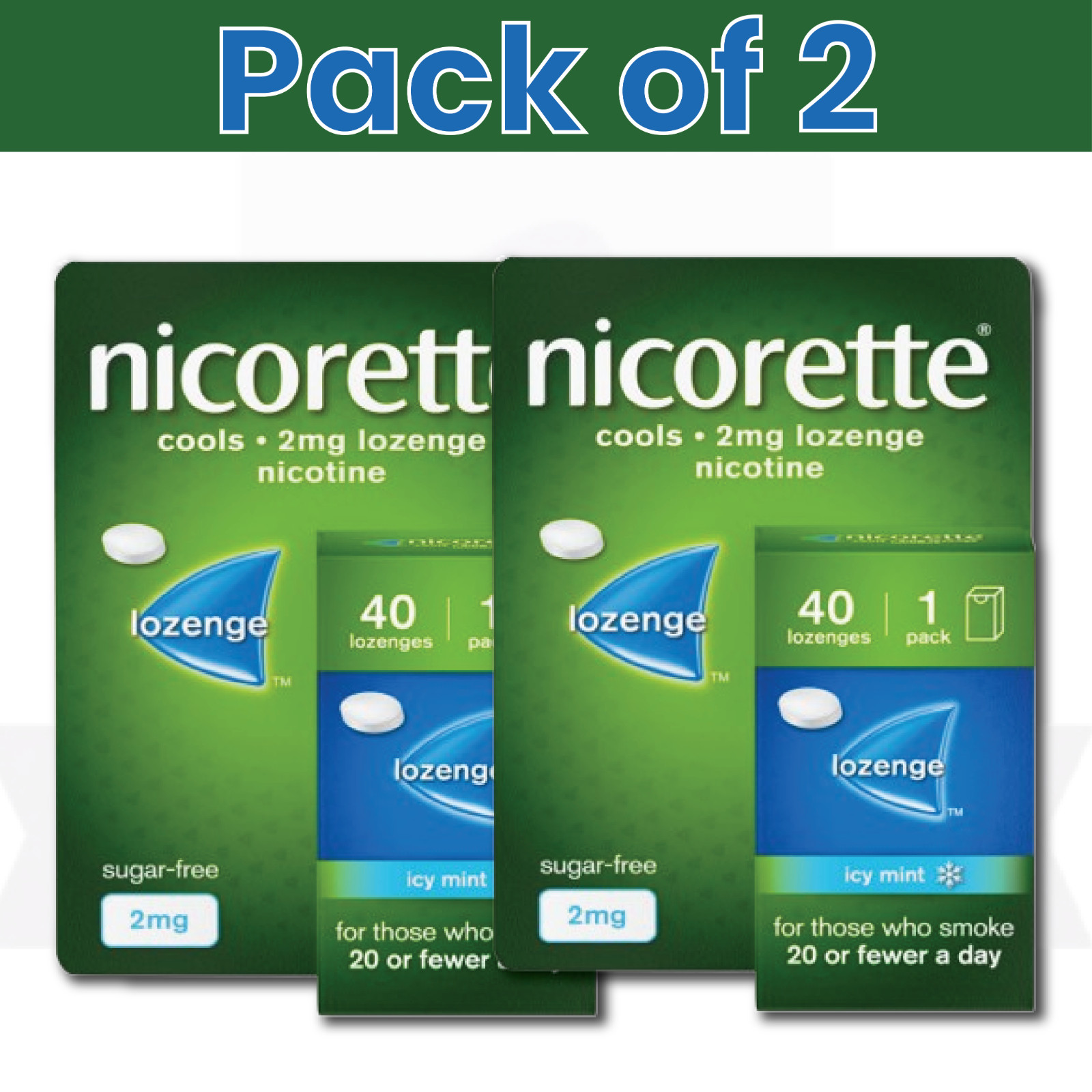 2 X Nicorette Cools 2mg Lozenge Icy Mint 1X40 Lozenges PACK OF 2