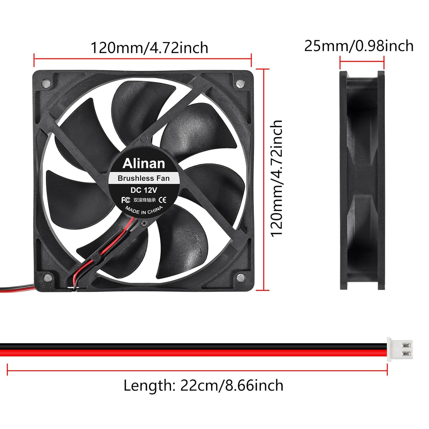 2Pcs 12025 120Mm X 25Mm 12V 5 Inch Dual Ball Bearings Brushless Fan 2Pin DC Cool