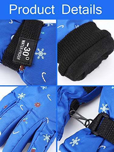 2 Pairs Kids Mittens Children 3 - 6 Years Blue and Rose Red Snowflake Style