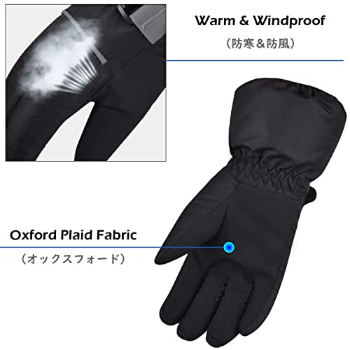 Kids Ski Snow Gloves Winter Cold Weather Windproof 11-14 years old C - Black