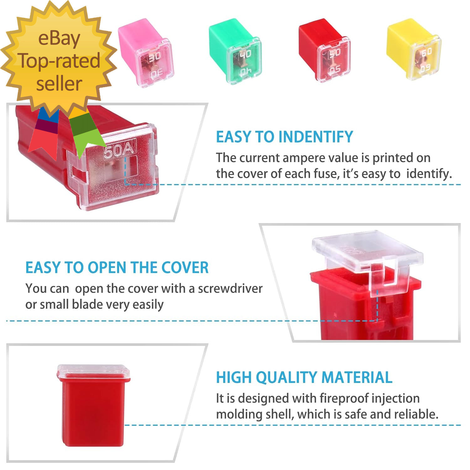 30Pcs Jcase Car Fuse Assortment Kit Tall/Std and Low Profile Jcase Box Shaped