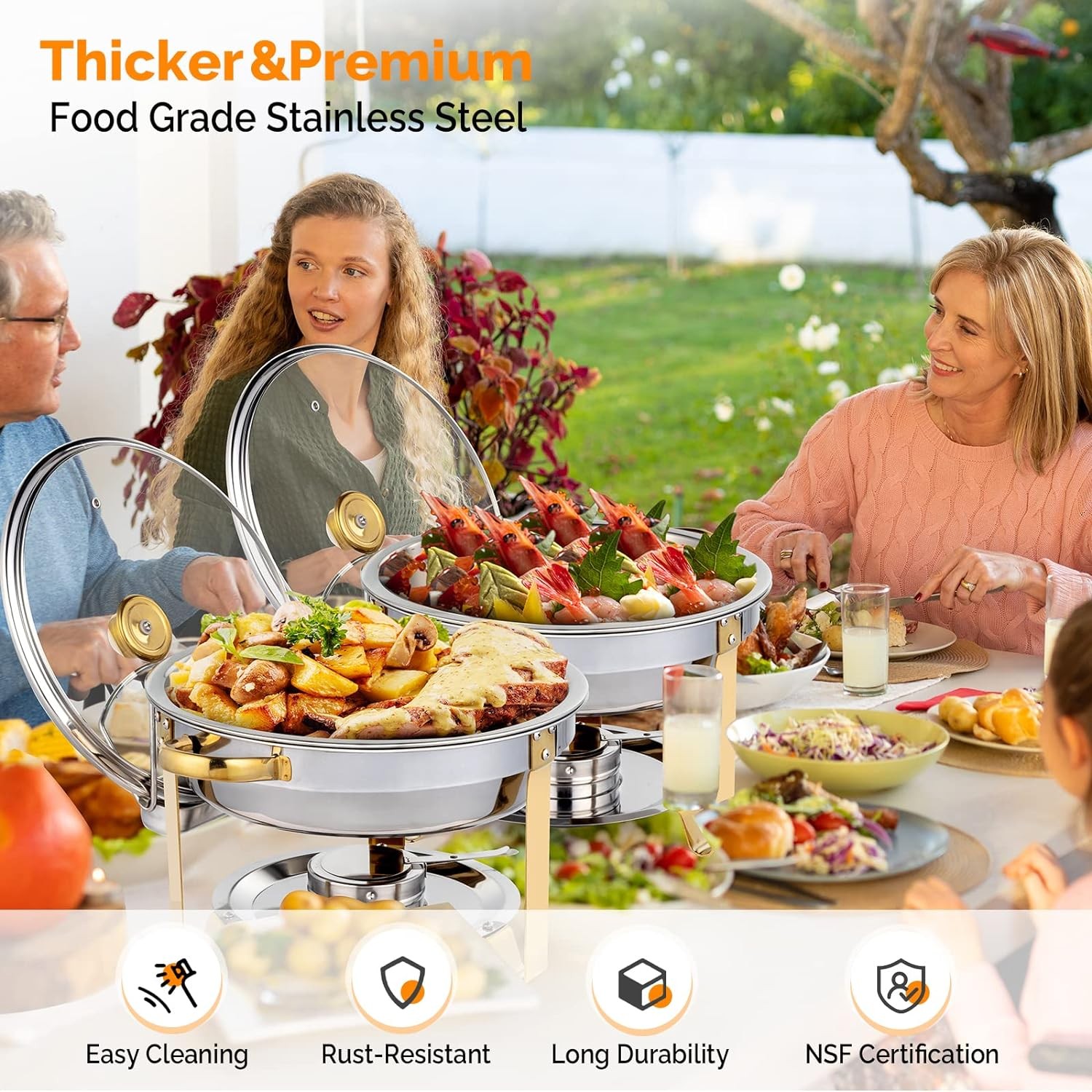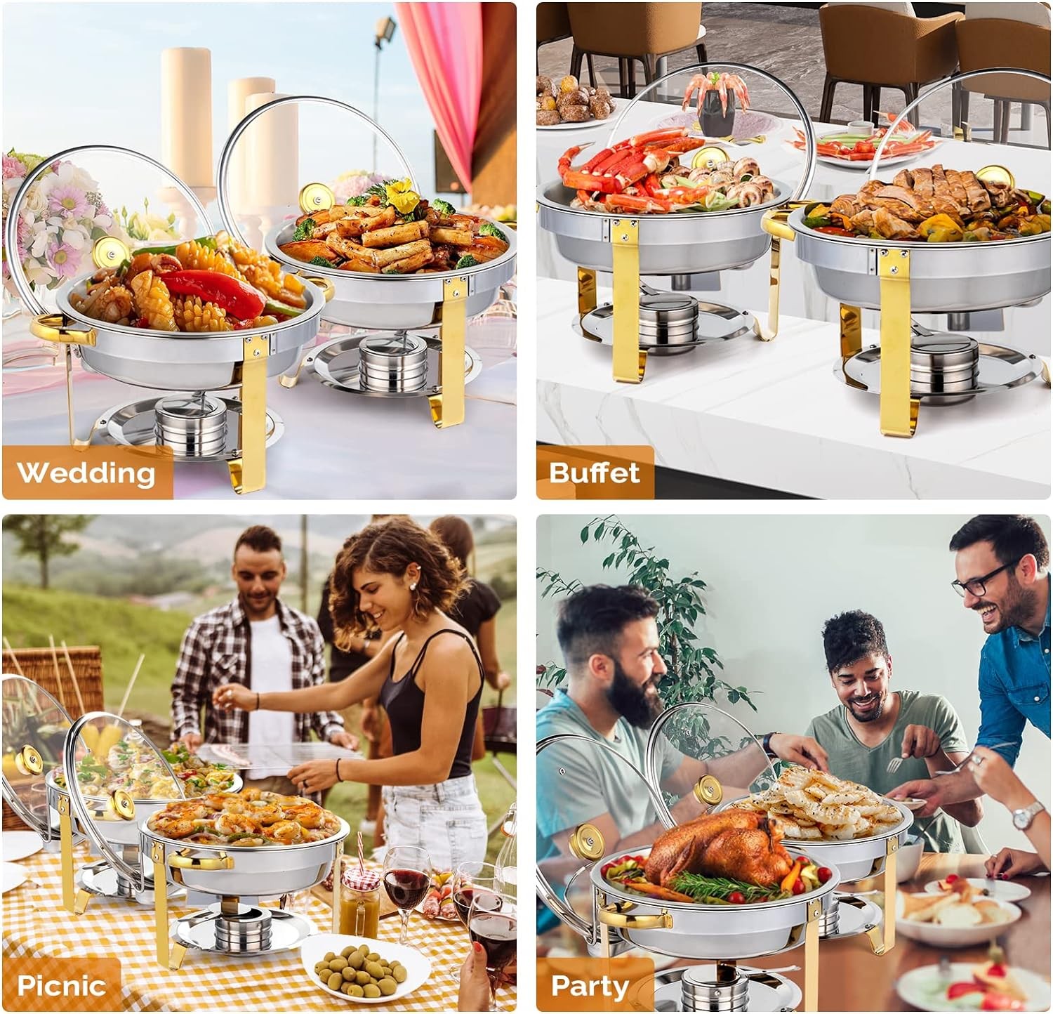2 Pack 5QT Chafing Dish Buffet Set with Glass Lid Lid Holder for Party Gold