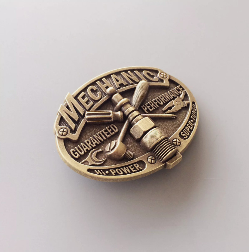 • Vintage Bronze Plated Mechanic Trades Tradesman Belt Buckle